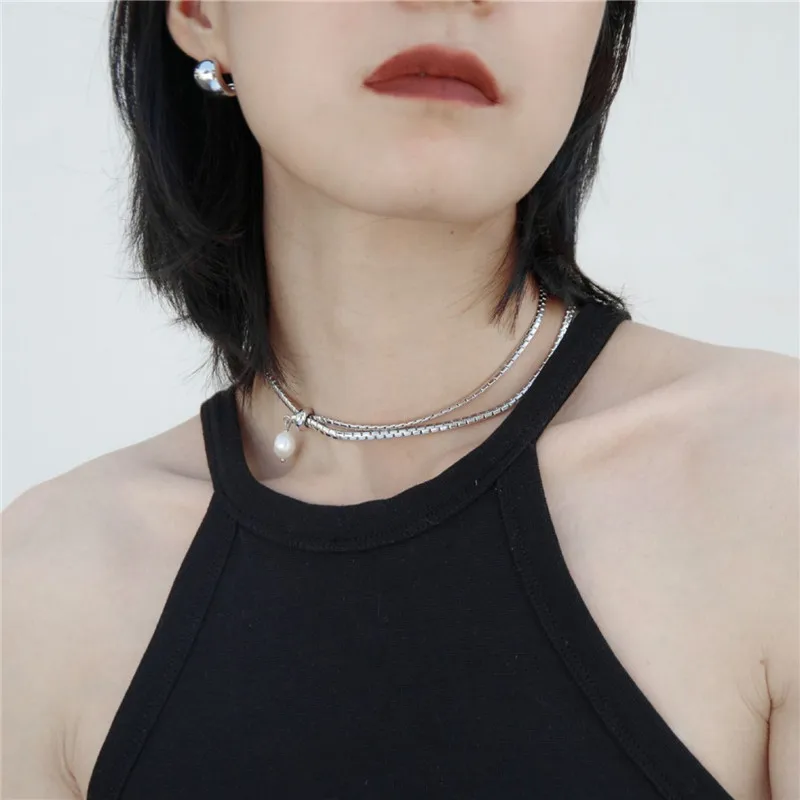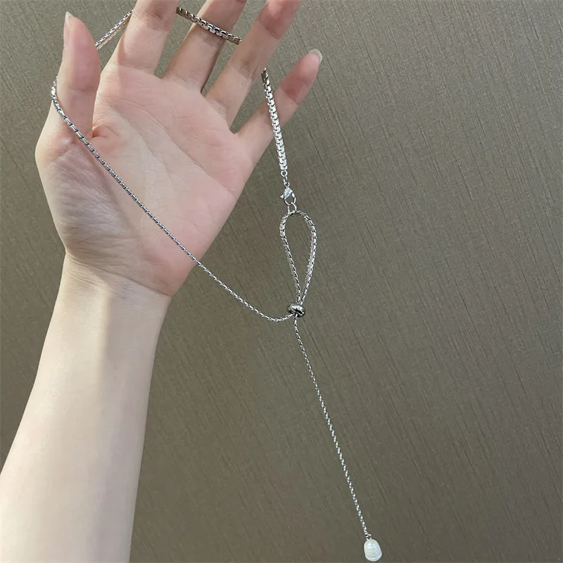 Женское Ожерелье AOMU, простое металлическое ожерелье с кисточками и узлом, регулируемое жемчужное ожерелье на цепочке для ключиц, вечерние ювелирные изделия, подарки