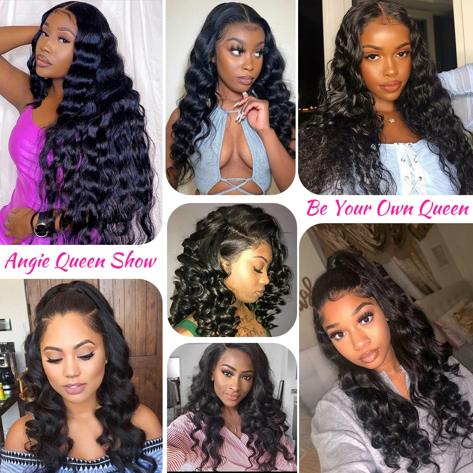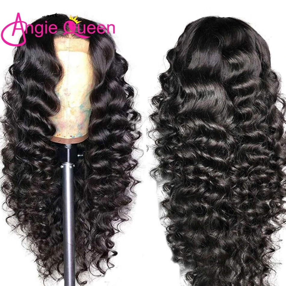 Женский парик Angie Queen, свободные натуральные волосы с прозрачной кружевной передней частью, с глубокой волной, 13 х4, предварительно выщипанные, без повреждений, HD