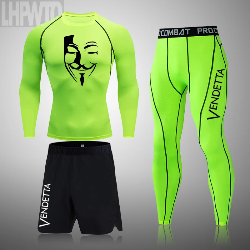 Мужской спортивный костюм для тренировок на открытом воздухе, фитнеса, тренажерного зала, бега, MMA Rashguard, Спортивная футболка, компрессионные колготки, кемпинг