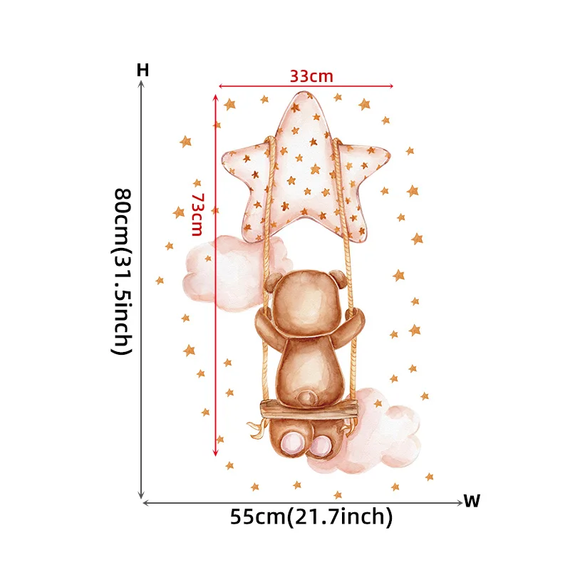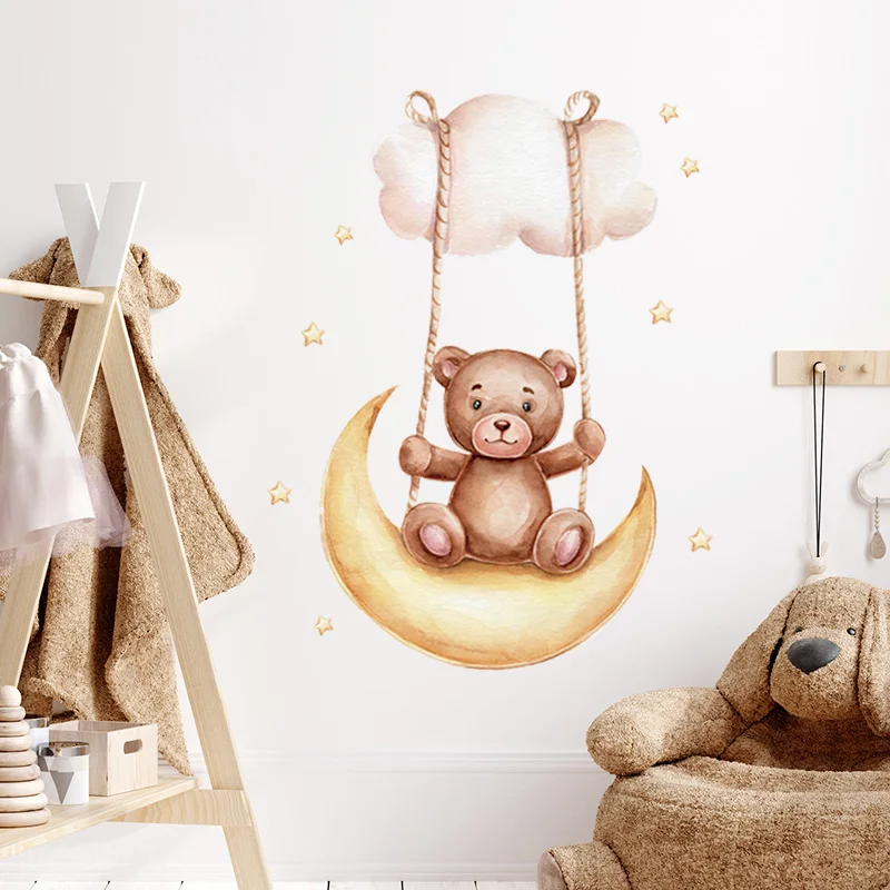 Декоративные наклейки на стену в виде коричневого медведя, качели на Луну
