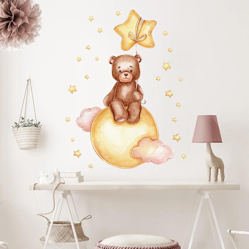 themeCartoon Brown Bear Swing on the Moon Wall Stickers