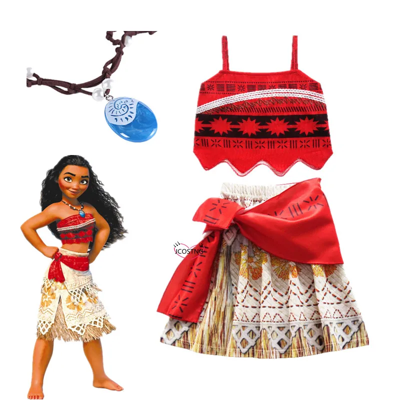 2022 Детский костюм Моаны для косплея на Хэллоуин для девочек платье принцессы ваяна с ожерельем детская одежда для дня рождения