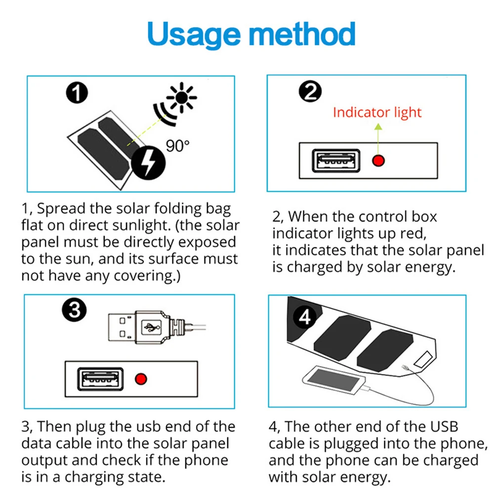 Складное зарядное устройство для солнечных батарей, 10 Вт, 5 панелей, 5 В, 2,1 А, USB-выход, портативные солнечные панели для смартфонов