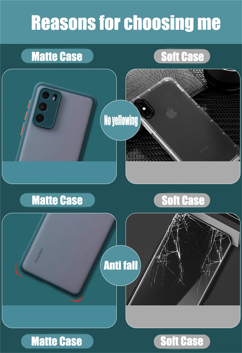 Противоударный Матовый Прозрачный чехол для Huawei P50 P40 P20 P30 ...