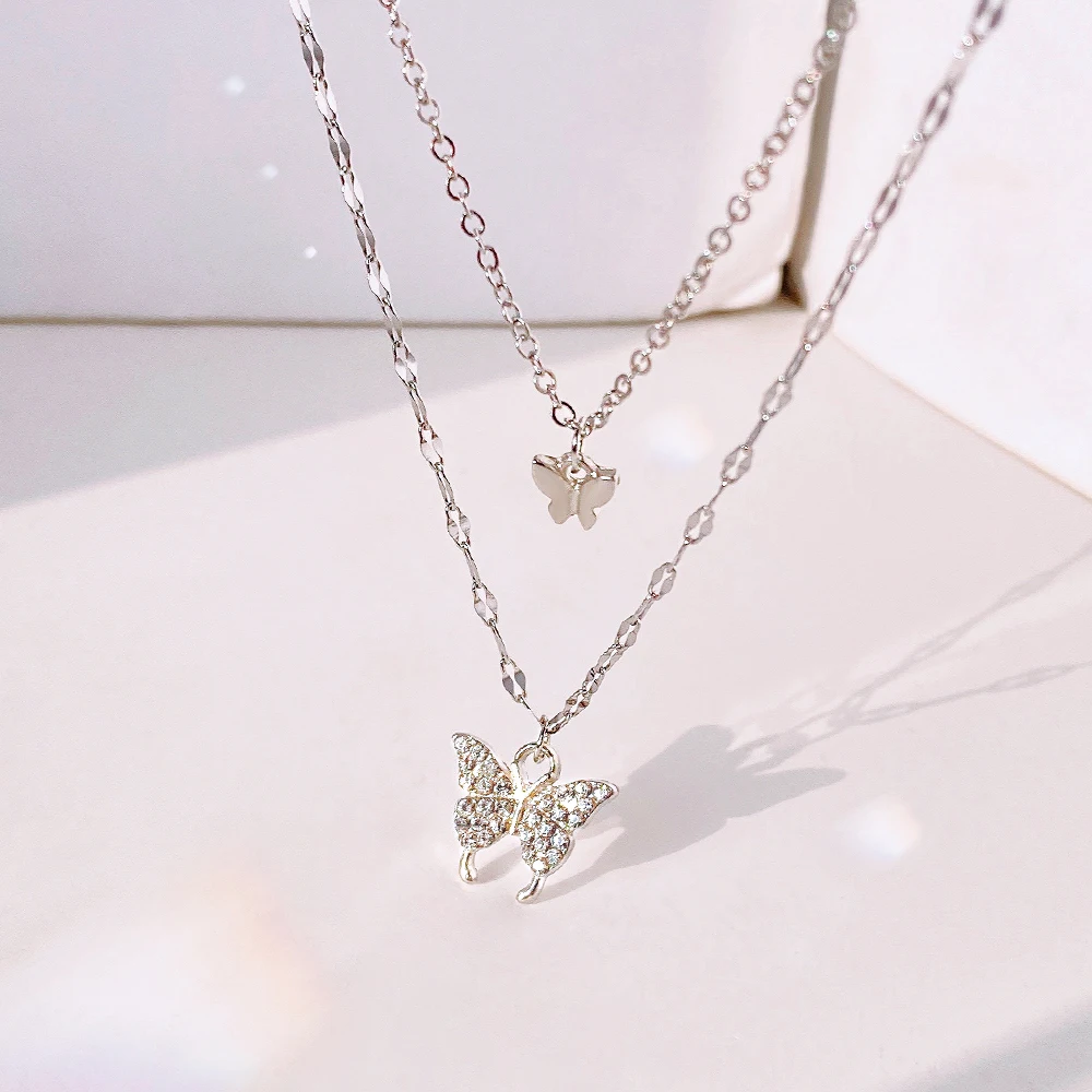 Модное Новое блестящее ожерелье FNIO 2022 с бабочкой, женское изысканное Двухслойное ожерелье с цепочкой до ключиц, ювелирные изделия для дам в подарок