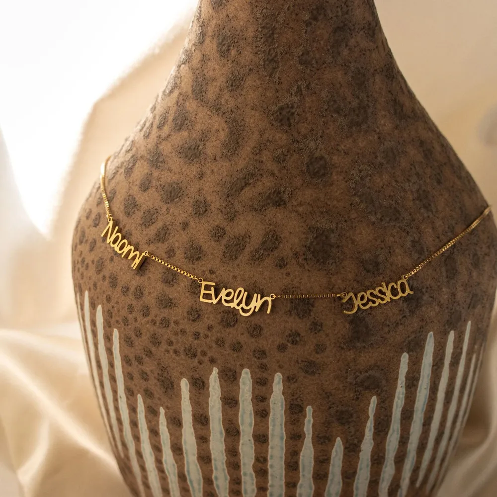 Индивидуальное ожерелье с различными именами VishowCo, подвеска из нержавеющей стали, цепочка с коробочкой, ожерелье с именем на заказ для женщин, Подарки Для Семьи