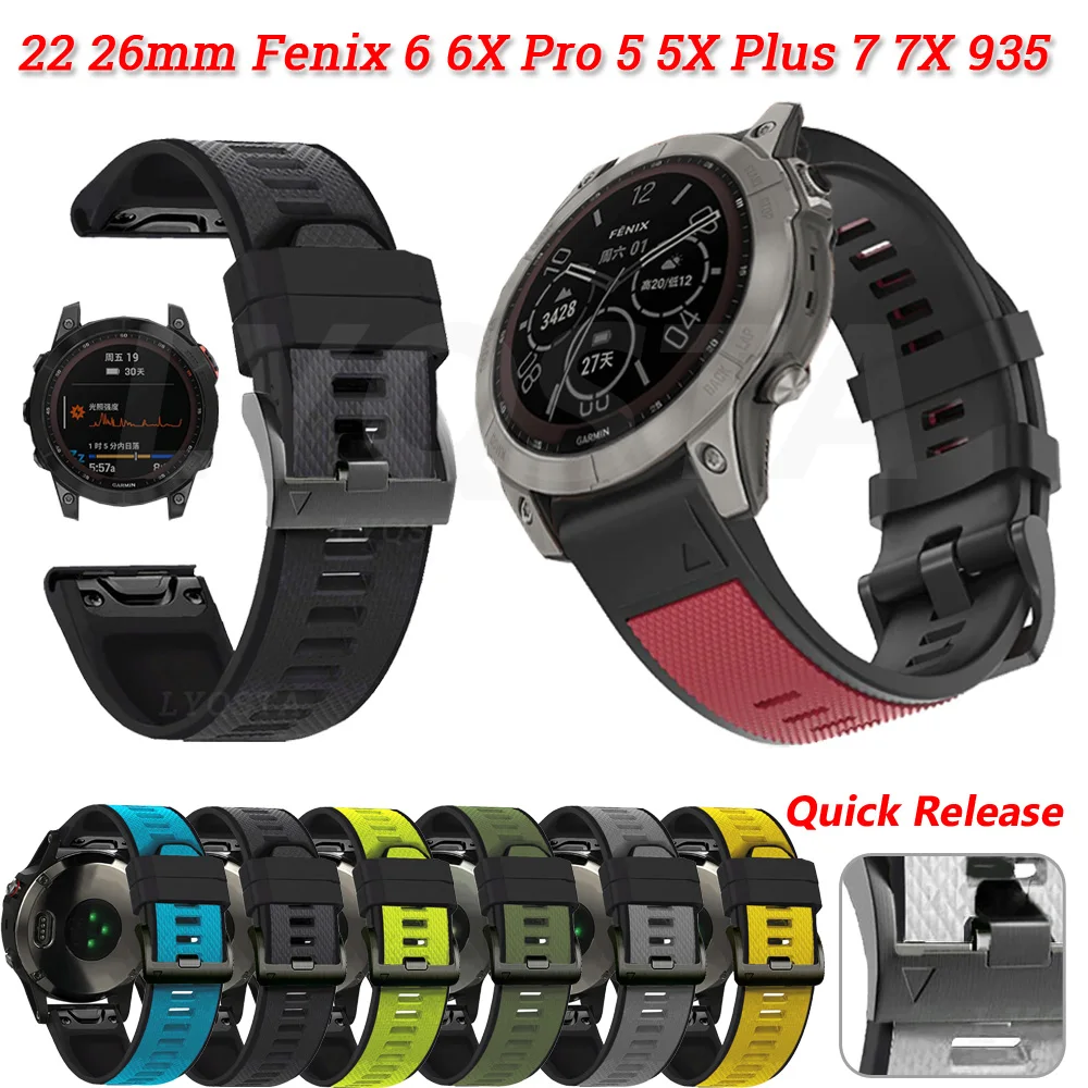 26 22 мм силиконовый ремешок для часов Garmin Fenix 6X 6 6S Pro 5X 5 5S Plus 3HR 935 Mk1 браслет быстросъемный ремешок Easyfit