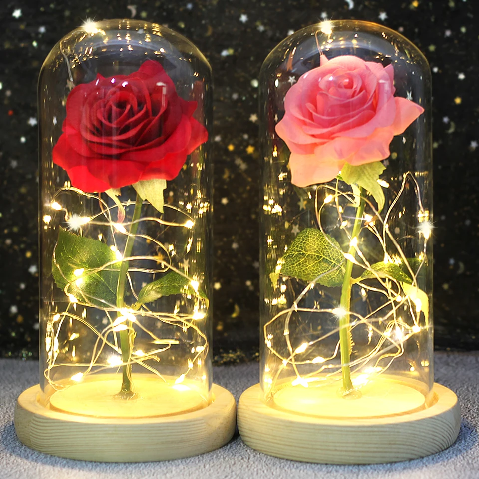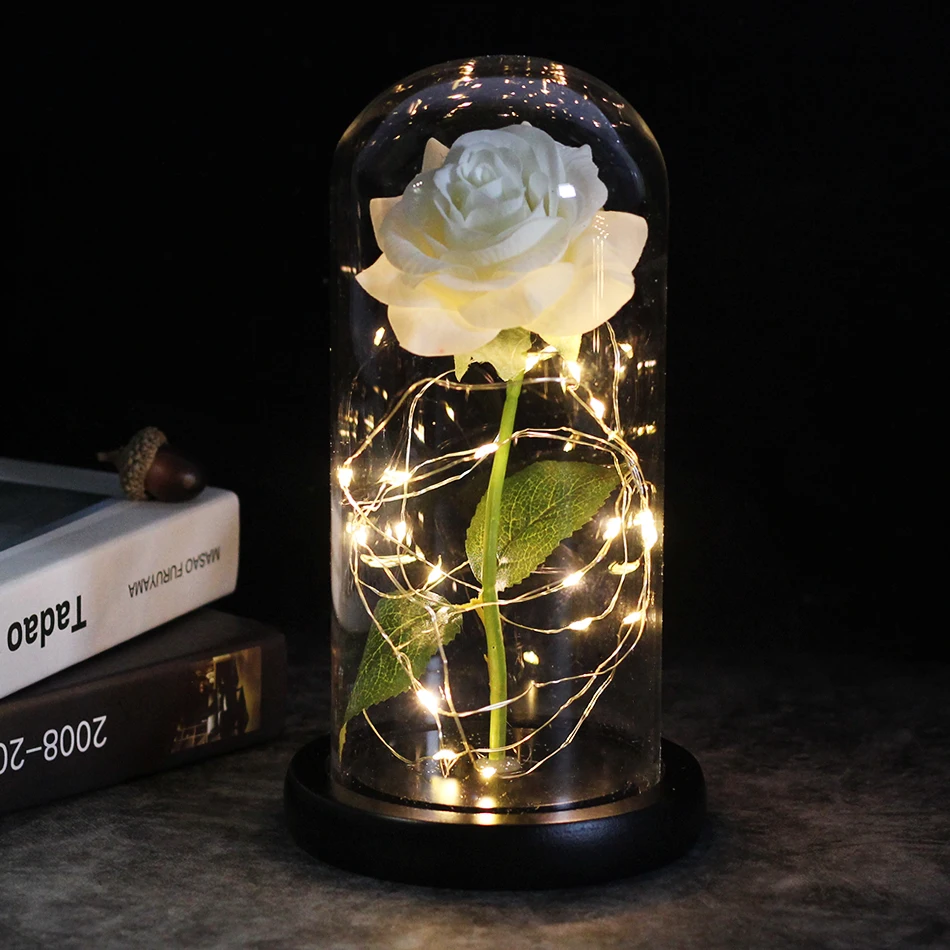 Красота и чудовище галактика Роза в стеклянном куполе белая основа для декора подарки на день Святого Валентина Рождество светодиодные Розы Свадебные лампы Декор