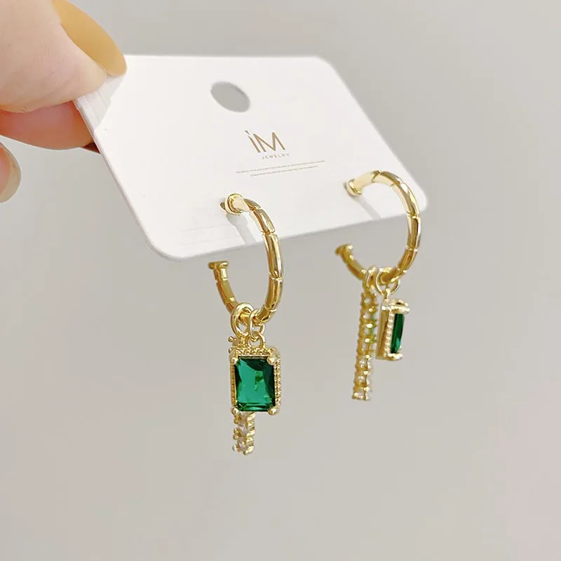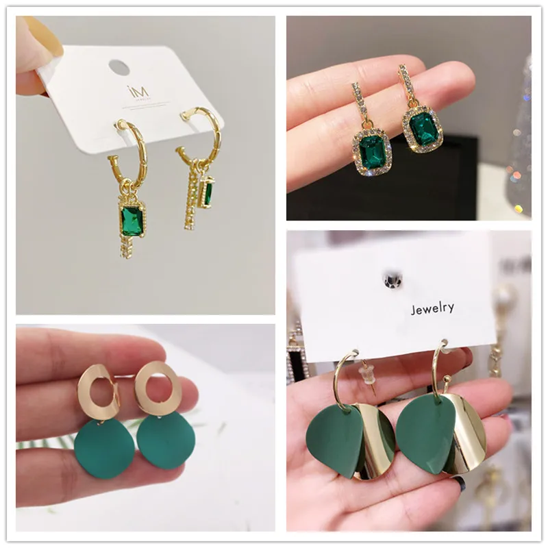 Женские Висячие серьги с кристаллами зеленого цвета, подвески с ими...