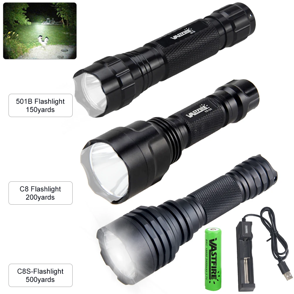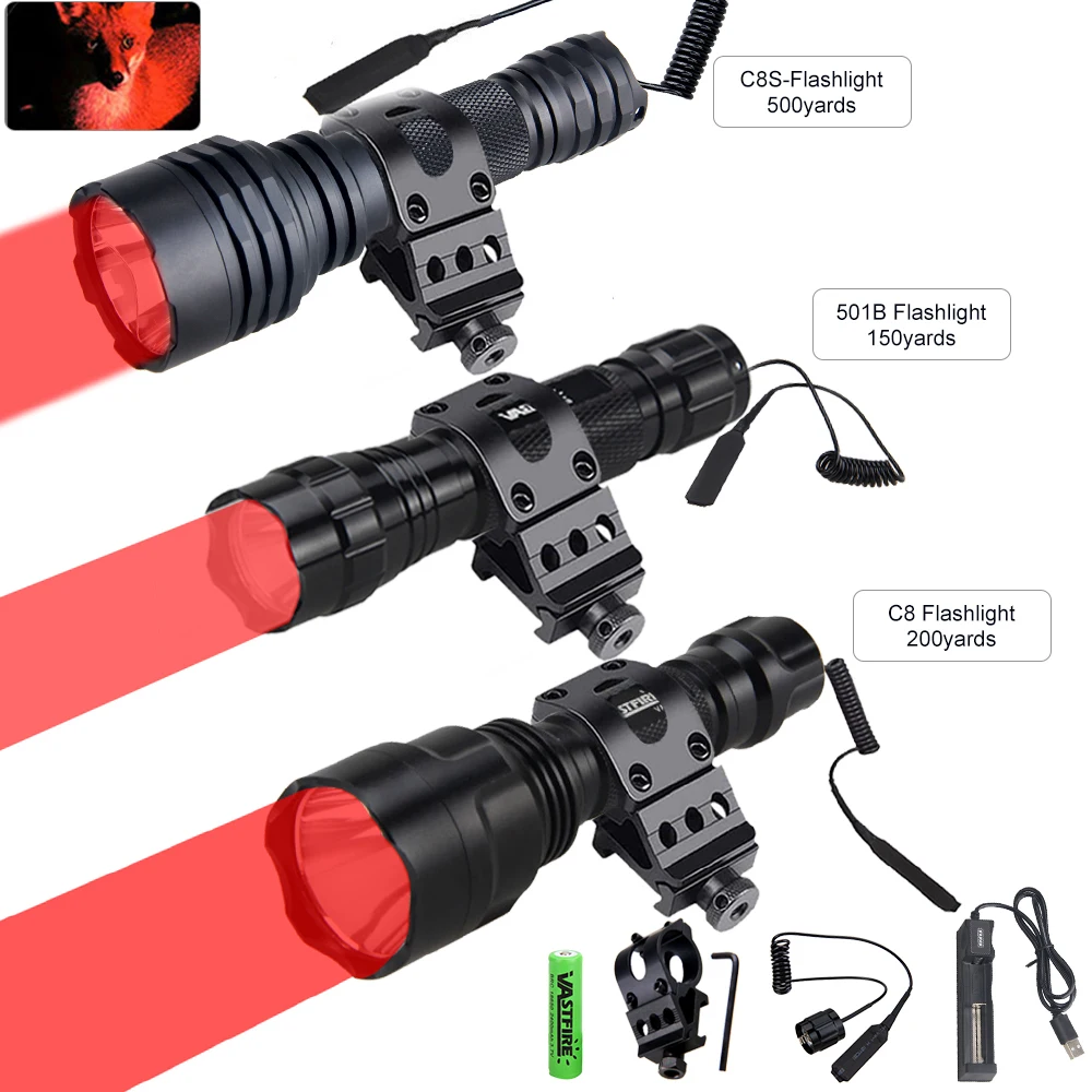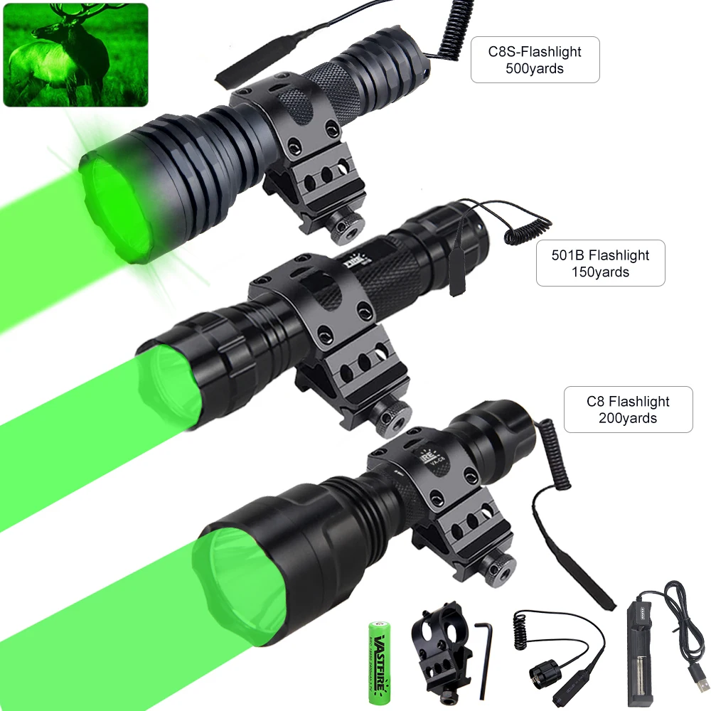 Тактические охотничьи фонарики T6 C8SC8501B, зеленый, красный, белый светильник, светодиодная перезаряжаемая вспышка s + 500 + зарядное устройство, 18650 ярдов