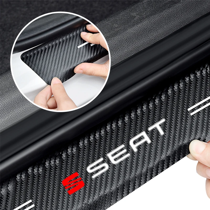 4 шт., защитные наклейки на порог автомобиля, из углеродного волокна