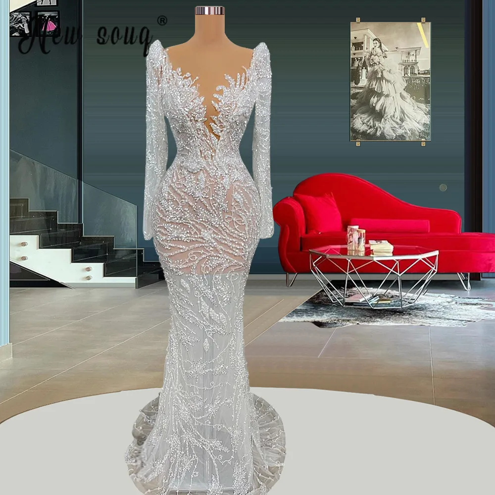 Женское вечернее платье-русалка, элегантное белое платье в арабском...