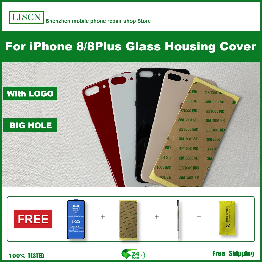 Стекло с большим отверстием для iPhone 8 8Plus, задняя крышка корпуса, с 3M клеем и инструментом, замена стекла задней крышки телефона Easy + Бесплатный подарок