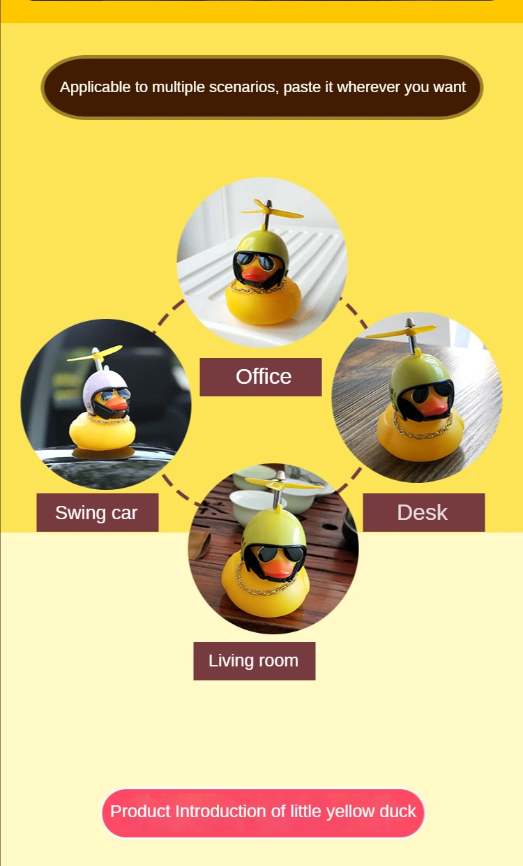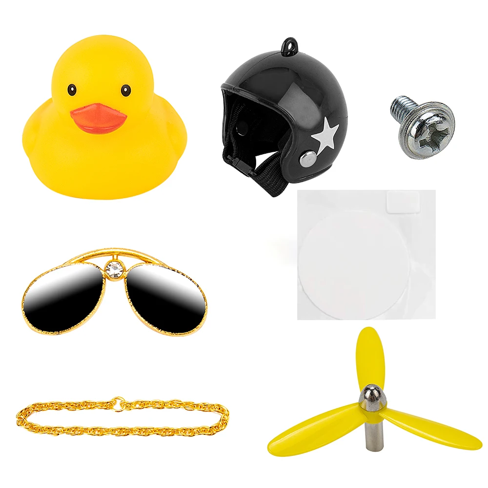 Особенности: Материал мягкий, безопасный и прочный, качество утки хорошее, сырье безопасно, и оно не вредит здоровью человека, со шлемом, винтом, солнцезащитными очками, металлической цепочкой для ожерелья, супер круто. Отлично подходит для надевания на автомобильный капот, зеркало заднего вида и т. д. также можно надеть детский шлем, когда они катаются на роликах, это действительно восхитительно.