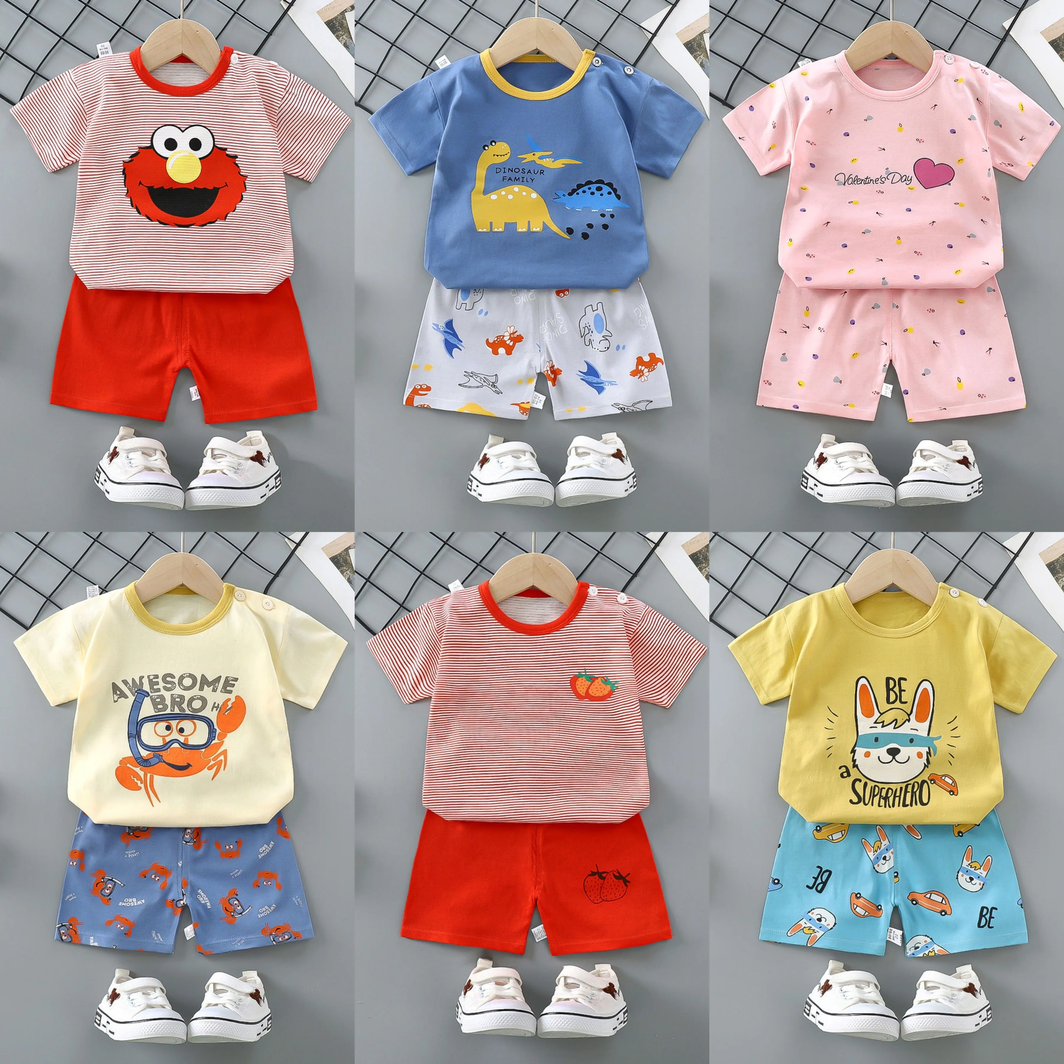 Модные комплекты одежды для маленьких мальчиков и девочек, 2 шт.компл., хлопковые детские шорты с коротким рукавом, комплект из 2 предметов, летняя одежда для детей
