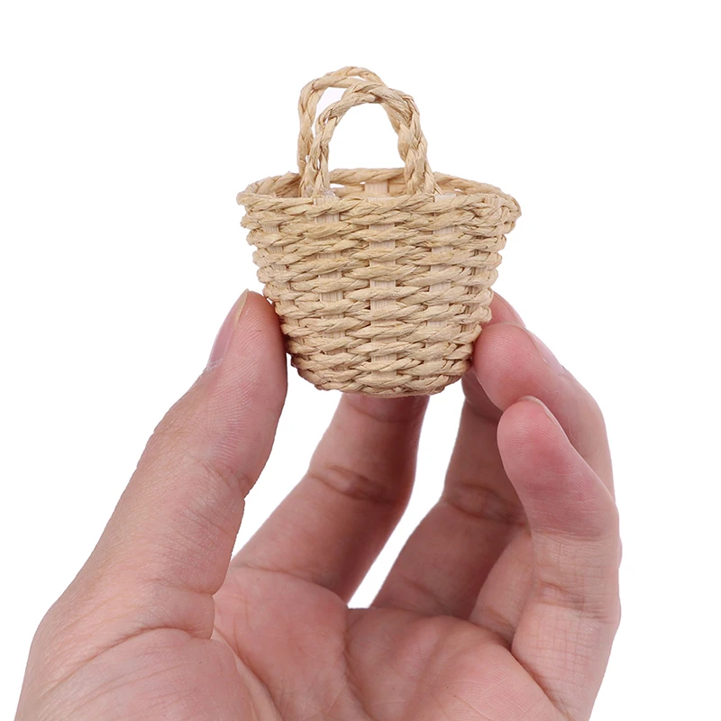Новинка 2022, милый Миниатюрный Кукольный Домик из ротанга с металлической рамкой, ручная работа, корзина для хранения овощей и еды, миниатюрное украшение для кукол, 112