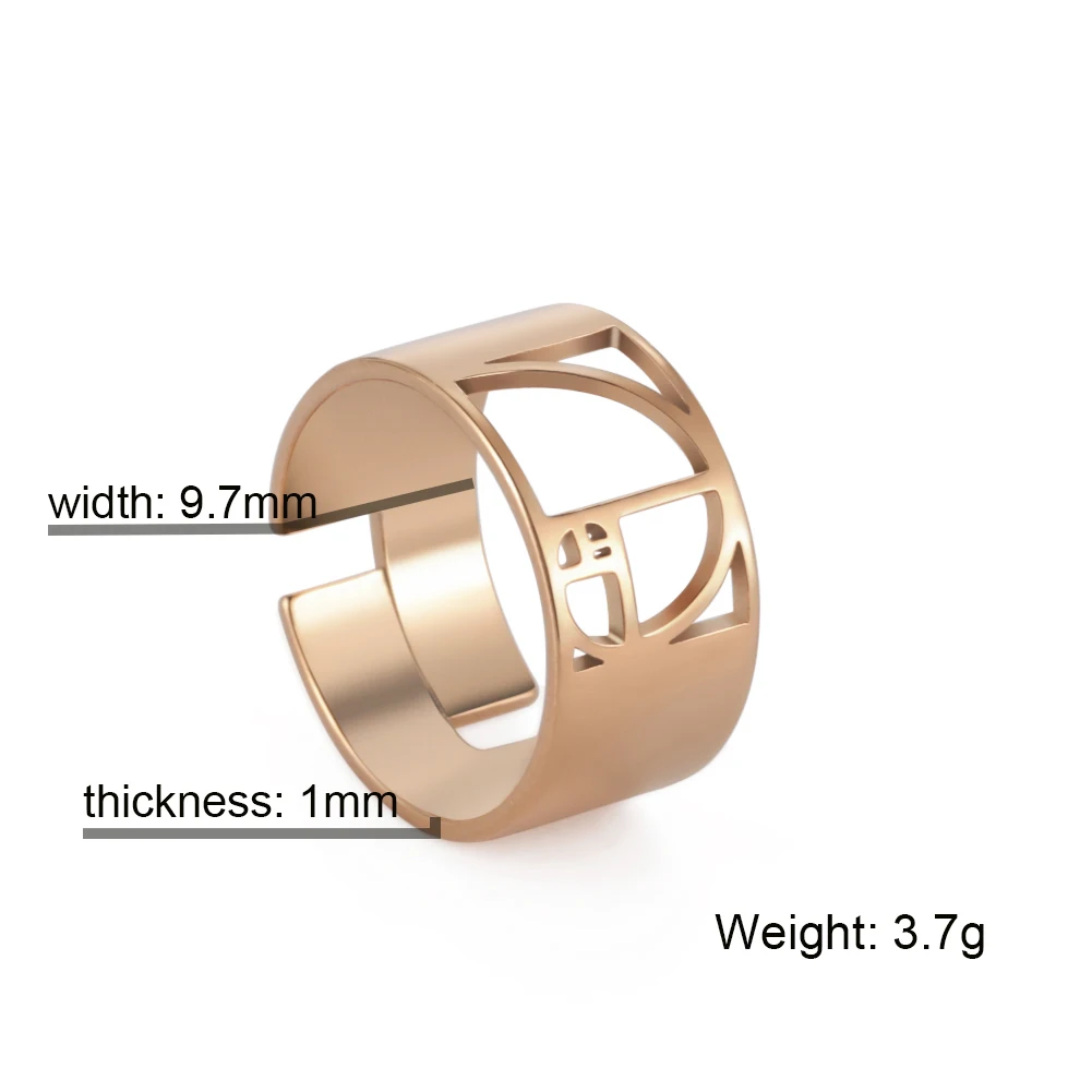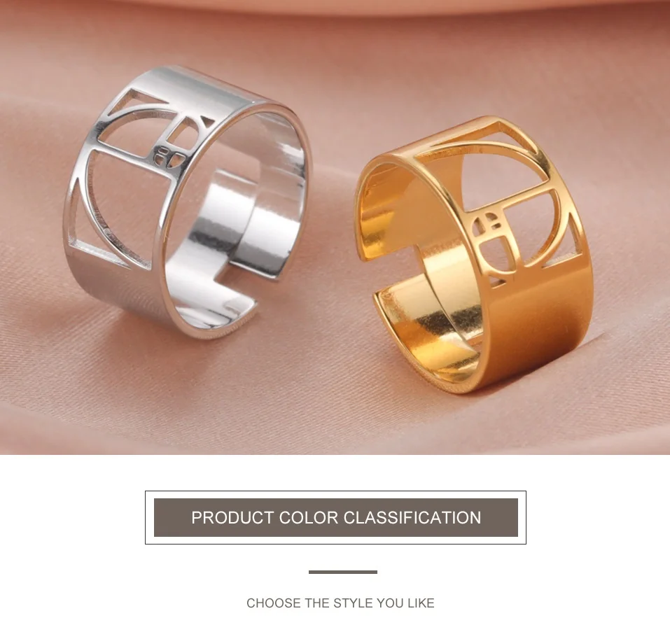Название продукта: спираль Фибоначчи в моей форме, кольца для мужчин, женщин, мужчин, эстетическое геометрическое кольцо из нержавеющей стали, винтажное ювелирное изделие, регулируемое