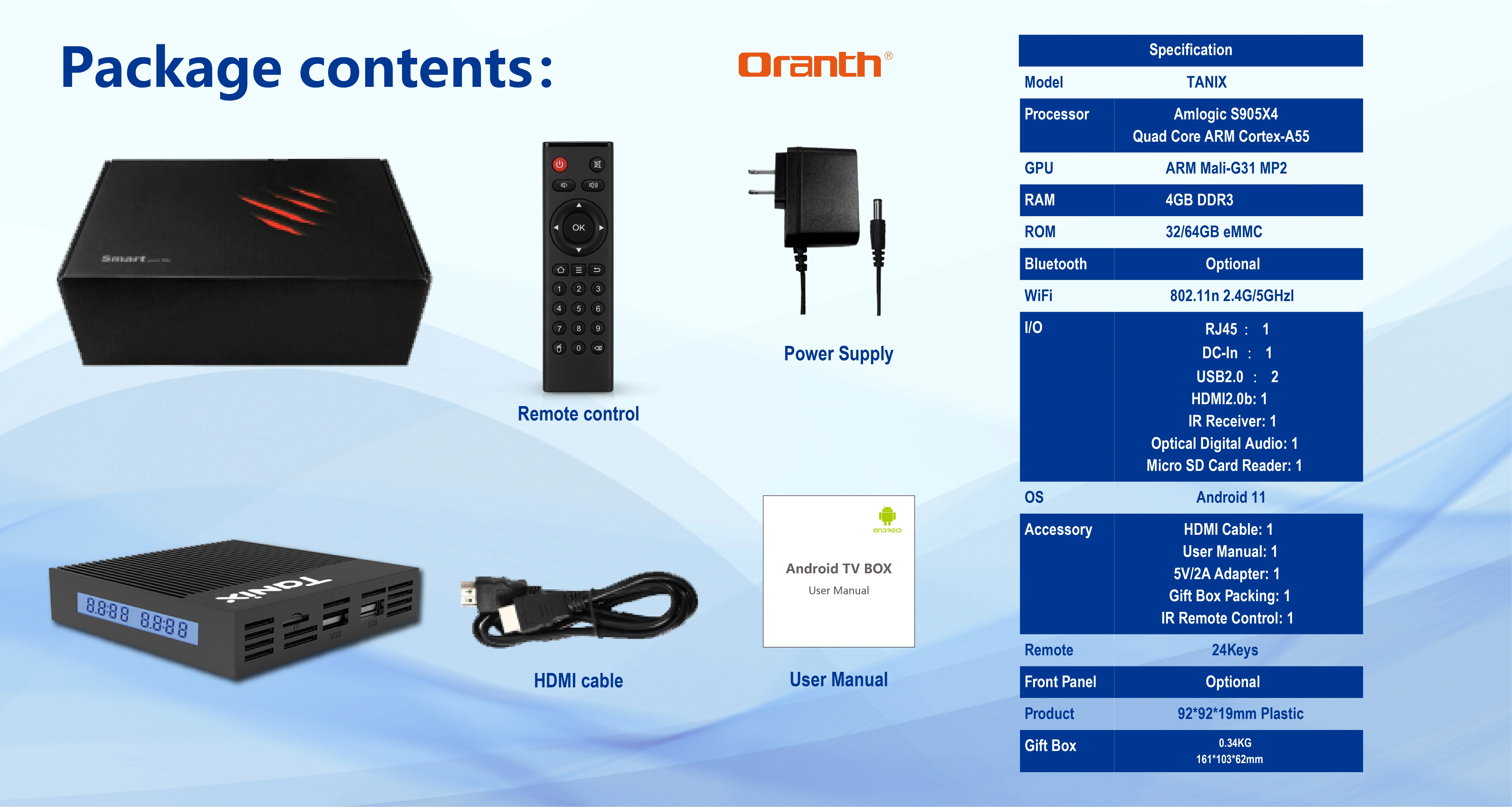 ТВ-приставка Tanix X4 Amlogic S905X4, Android 11, 4 + 3264 ГБ, 100 Мбитс, Wi-Fi