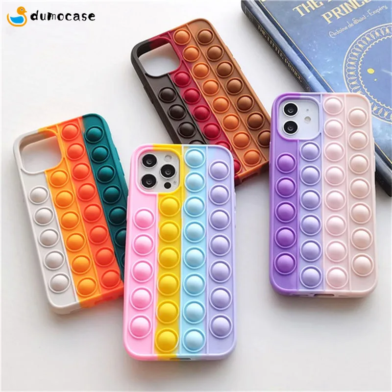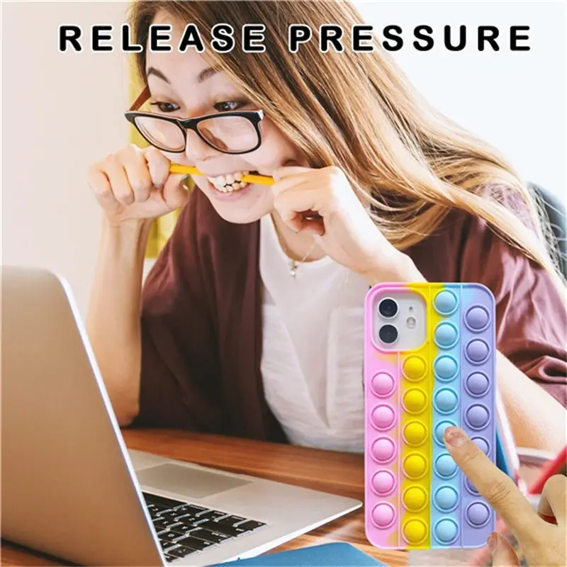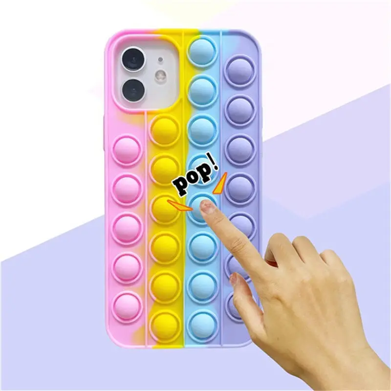 Design3Rainbow Color Relive Stress Fidget Toys Push Bubble Case