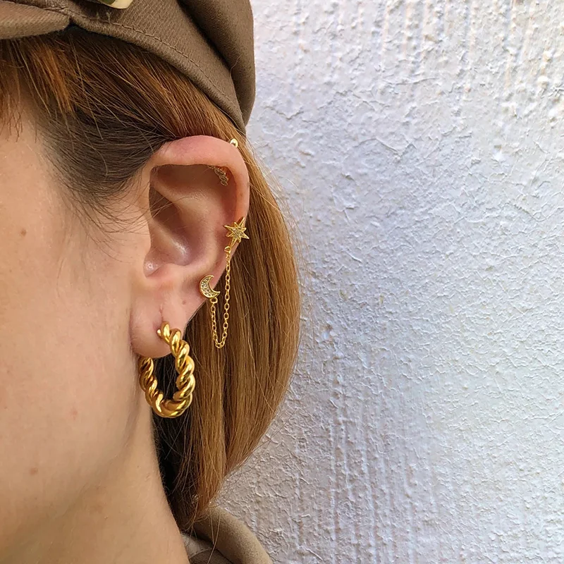 ROXI циркониевые серьги-кольца с камнем в виде клевера для женщин, серебряные серьги-кольца в виде звезды и Луны, ювелирные изделия, серьги Plata 925 Aros