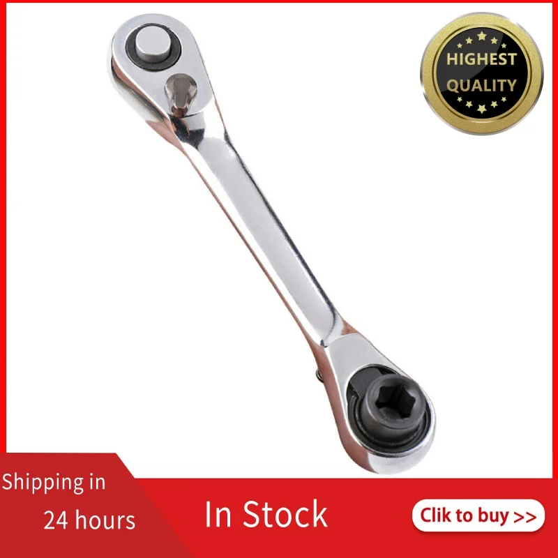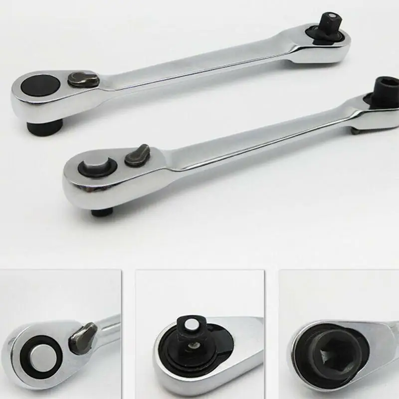 -Двусторонняя рукоятка храповика с 2 размерами, которая включает в себя 1/4 дюймовый Квадратный привод и 1/4 дюймовый шестигранный бит-драйвер.