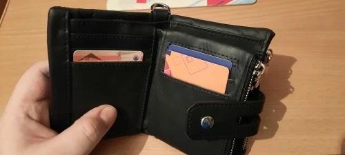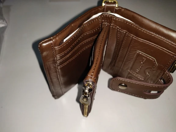 Это не выглядит как натуральная кожа. Были даже белые формы, образующиеся в пятнах по всему бумажнику, ручки на молнии также обесцвечиваются, вероятно, из неправильного хранения. Разные держатели маленькие и с легкостью могут вместить в них все, что больше, чем дебетовая карта не подойдет... В целом разочарование.