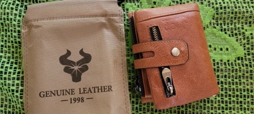 Кошелек пришел быстро, за 3 недели, настоящая кожа или нет, я не знаю, НО если вам не критично, не заказывайте гравировку имени, она слишком глубоко в материал вбивается и я боюсь что через год там может порваться из за гравировки имени.