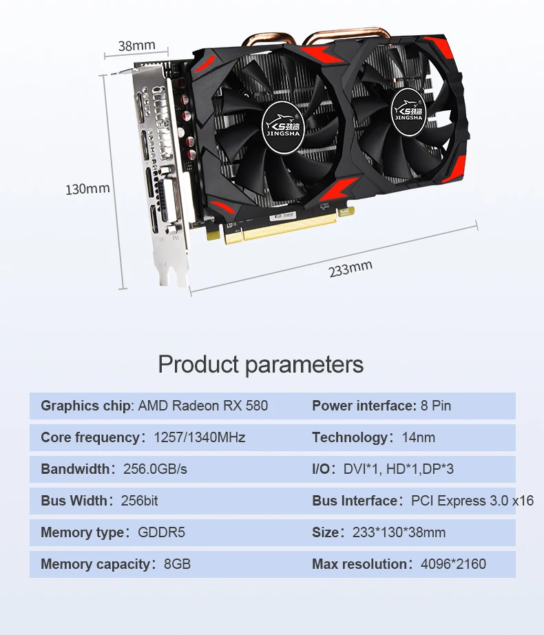 Новая 100% оригинальная видеокарта JINGSHA Radeon RX 580 8 ГБ GDDR5 256Bit, игровые видеокарты для майнинга с высокой скоростью хеш AMD RX 580 GPU