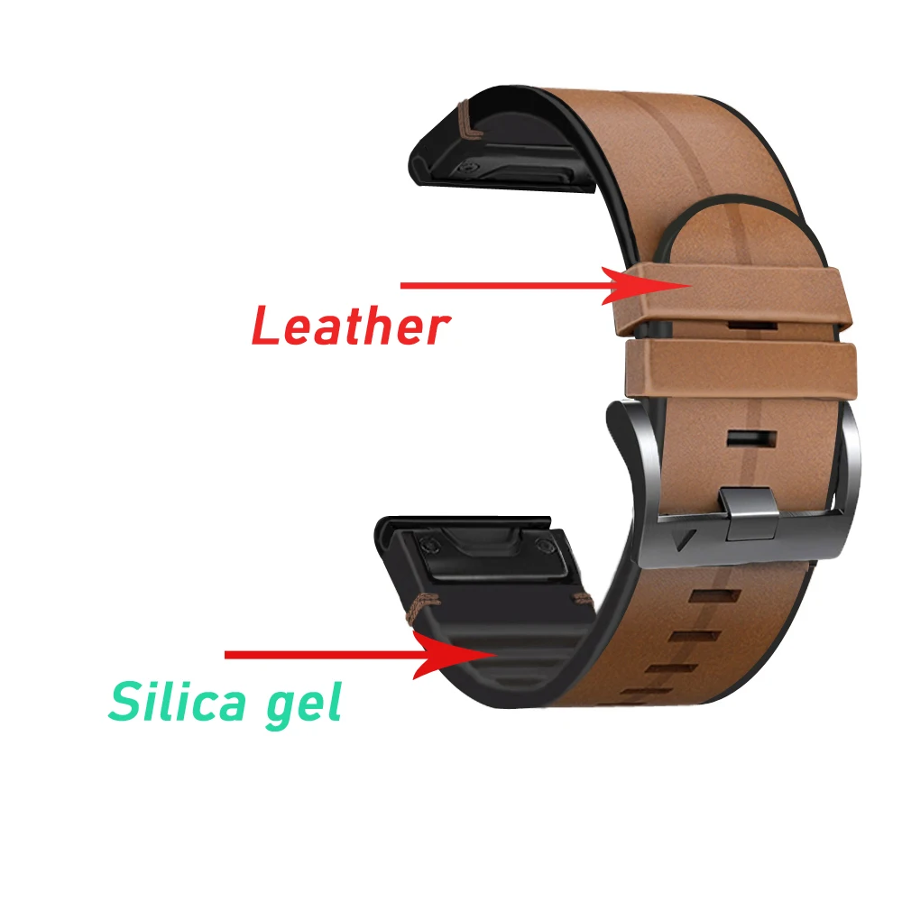 Кожаный + силиконовый Смарт-часы ремешок браслет 22 26 мм для Garmin Fenix 6 6X Pro 5 5X Plus 3HR Fenix 7 7X быстросохнущие браслеты