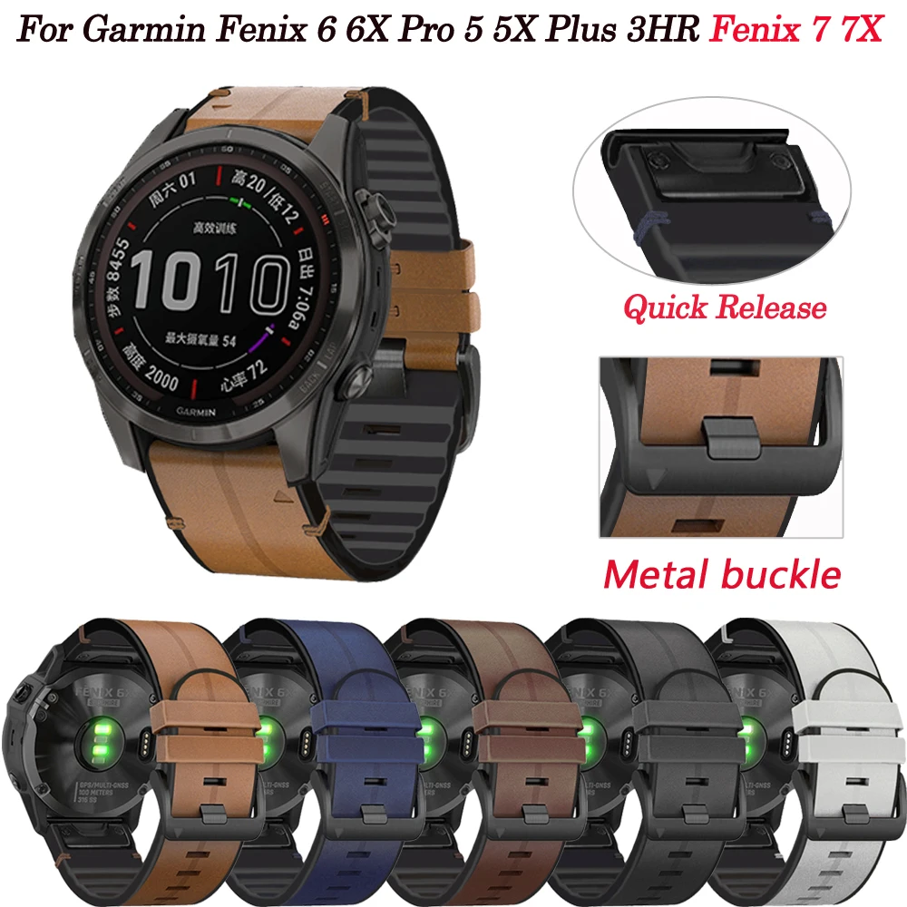 Ремешок из кожи и силикона для смарт-часов, браслет для Garmin Fenix 6 6X Pro 5 5X Plus 3HR Fenix 7 7X, быстрая установка, 22 мм