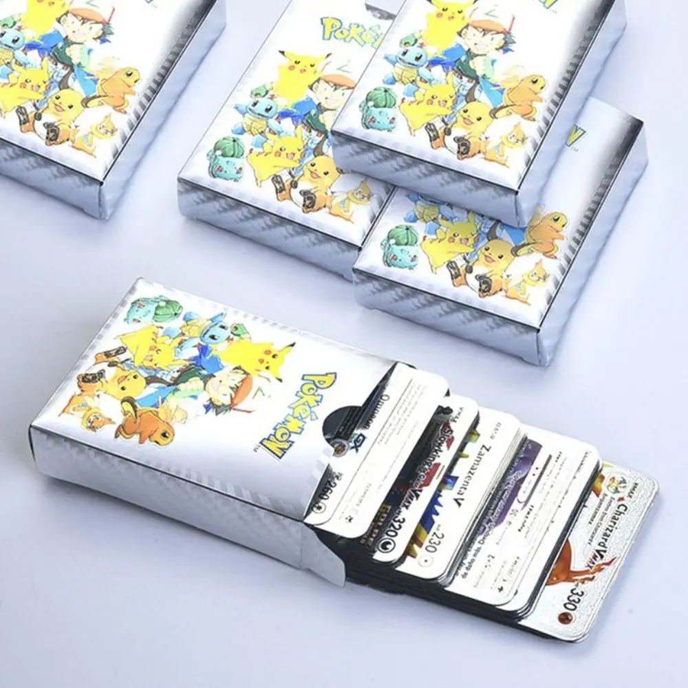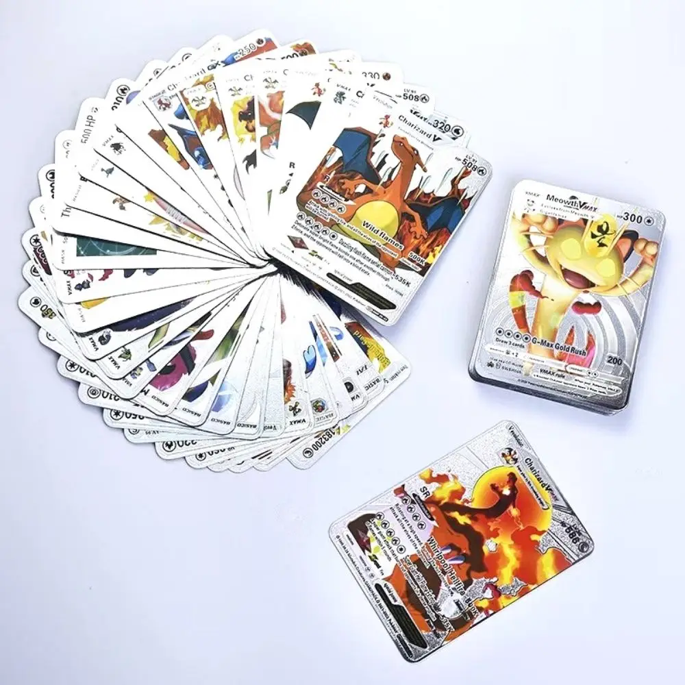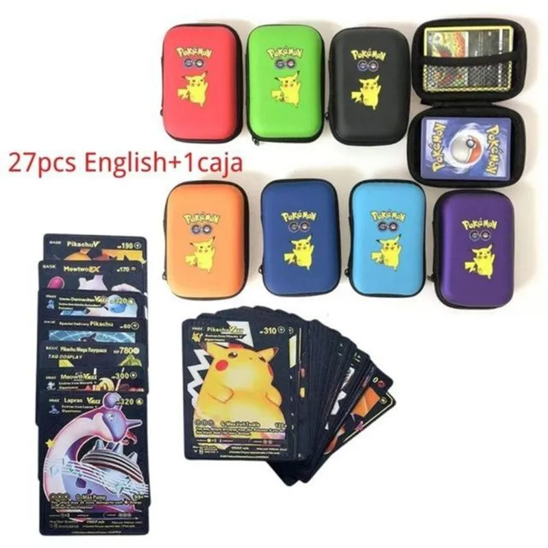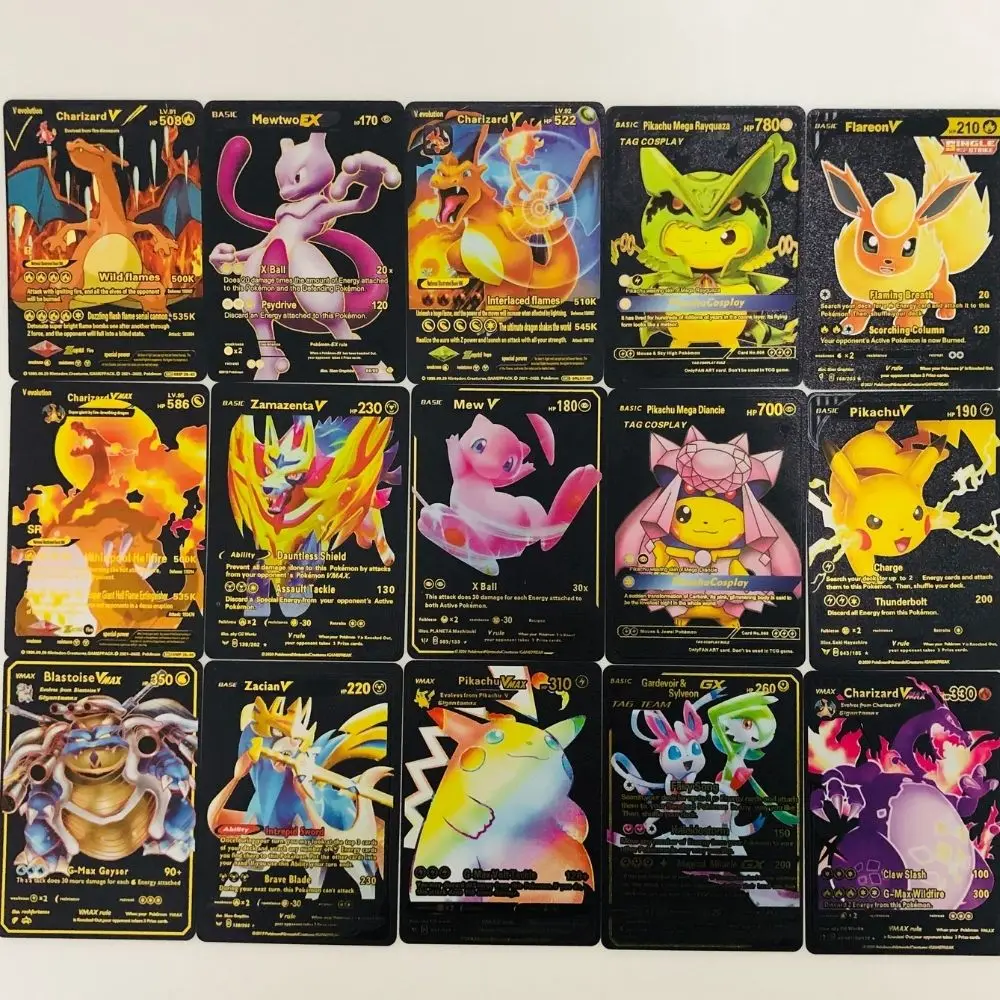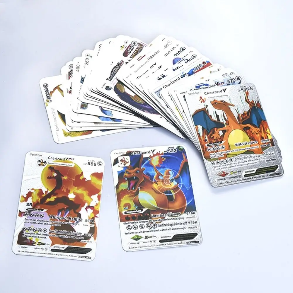 2022 металлическая Золотая карточная коробка Pokemon с золотыми буквами, английская игровая карточка metalicas Charizard Vmax GX, коллекционная игровая карточка