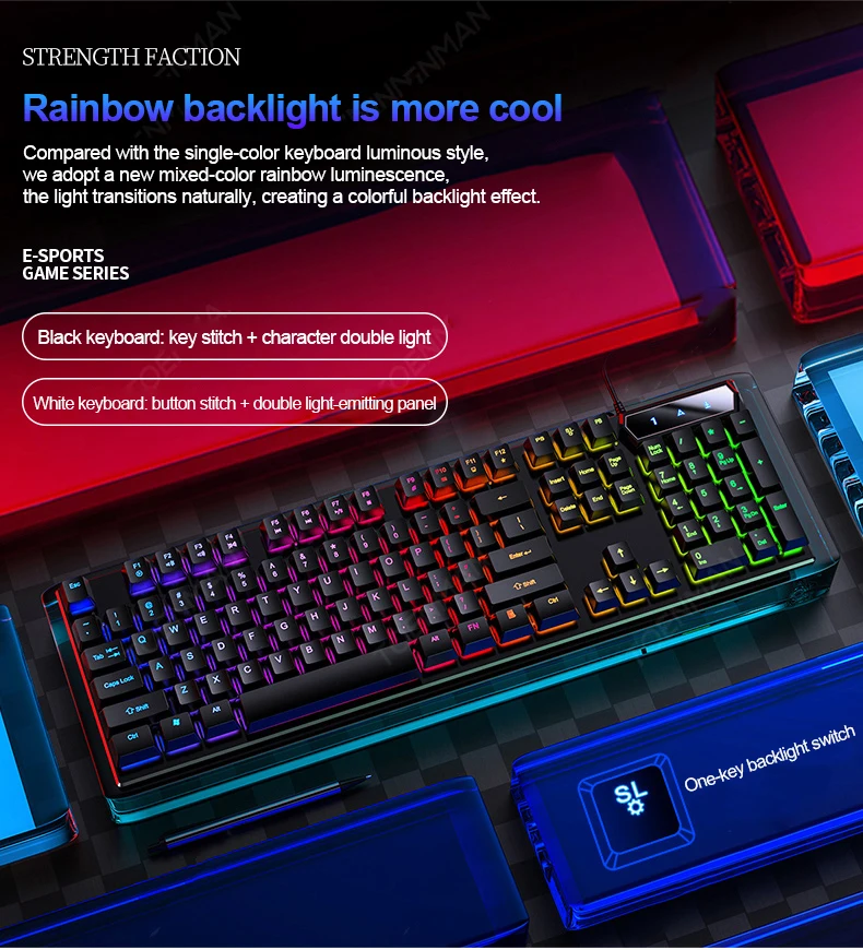 USB-клавиатура Проводная игровая с подсветкой, 104 комплектов