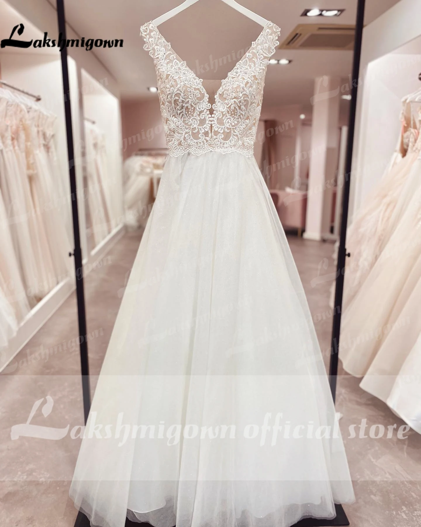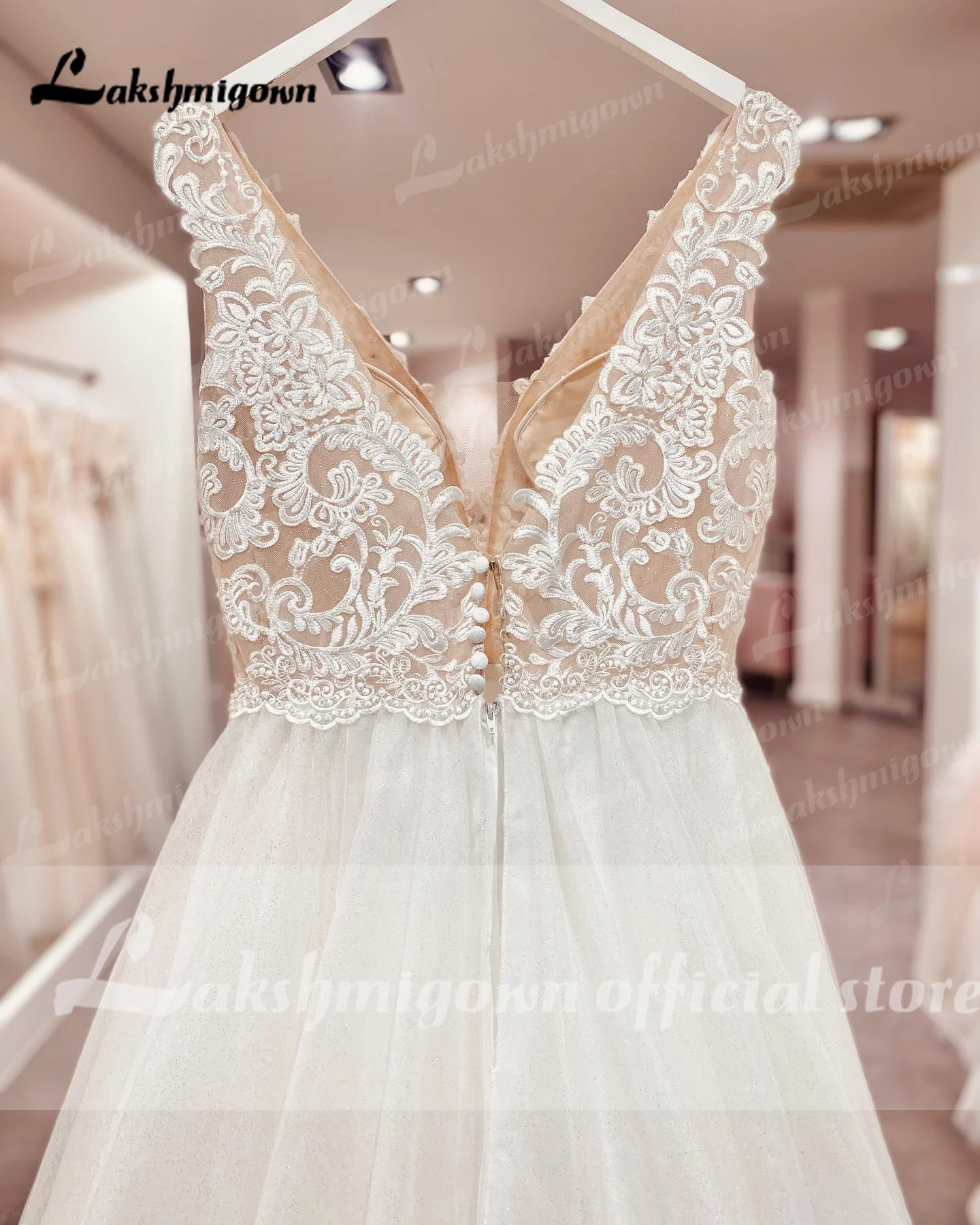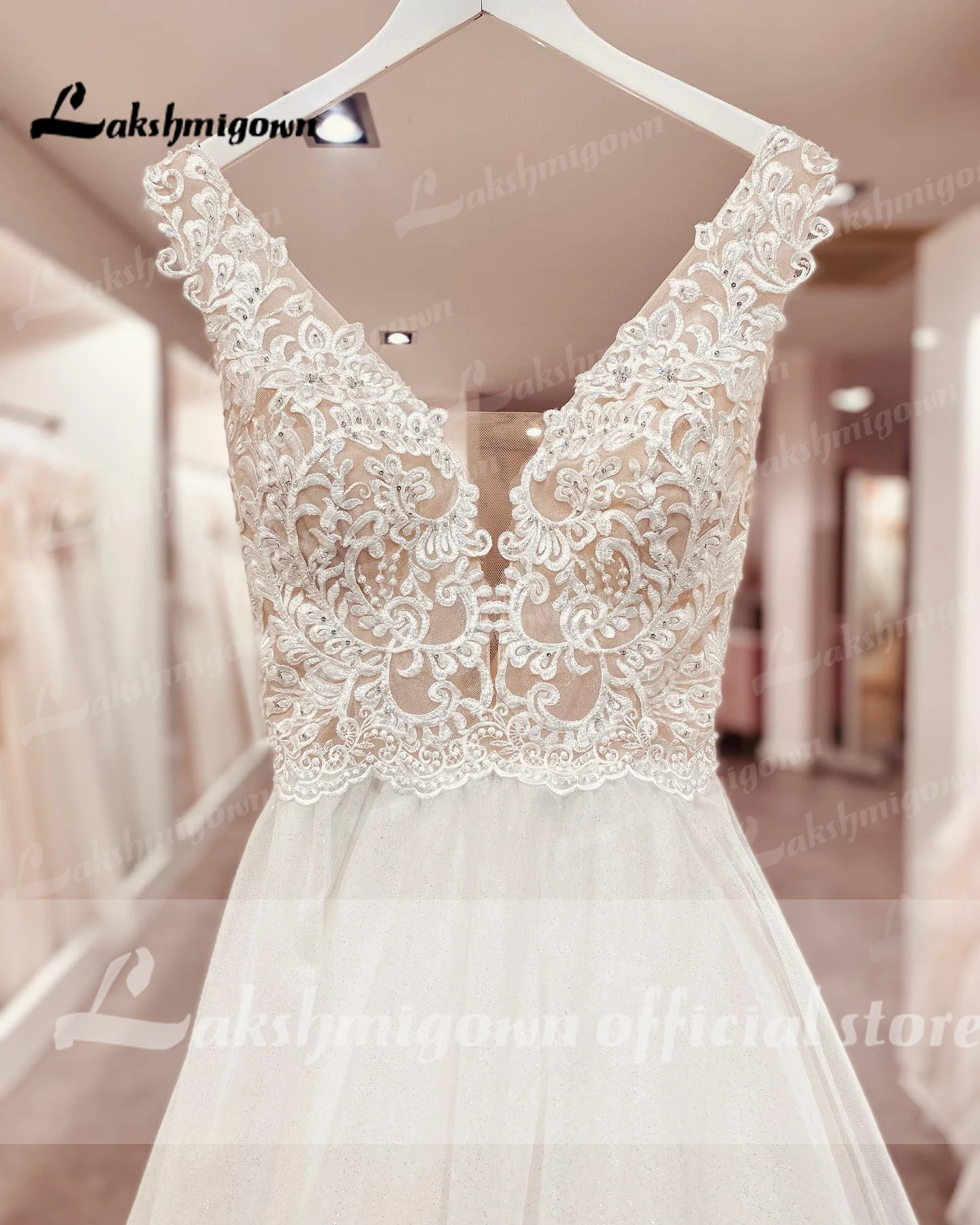 Сексуальное свадебное платье-трапеция в стиле бохо с V-образным вырезом, 2022, шикарный халат, богемное пляжное искусственное платье из тюля с аппликацией