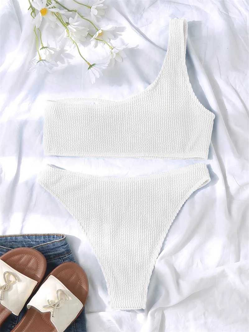 Купальник женский на одно плечо, пикантный бразильский комплект бикини-бандо, микро купальный костюм для женщин, пляжная одежда