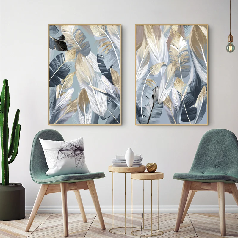 Золотая Картина на холсте с тропическими деревьями и пальмами, современный пейзаж, принты и плакаты, Скандинавская Настенная картина для декора гостиной
