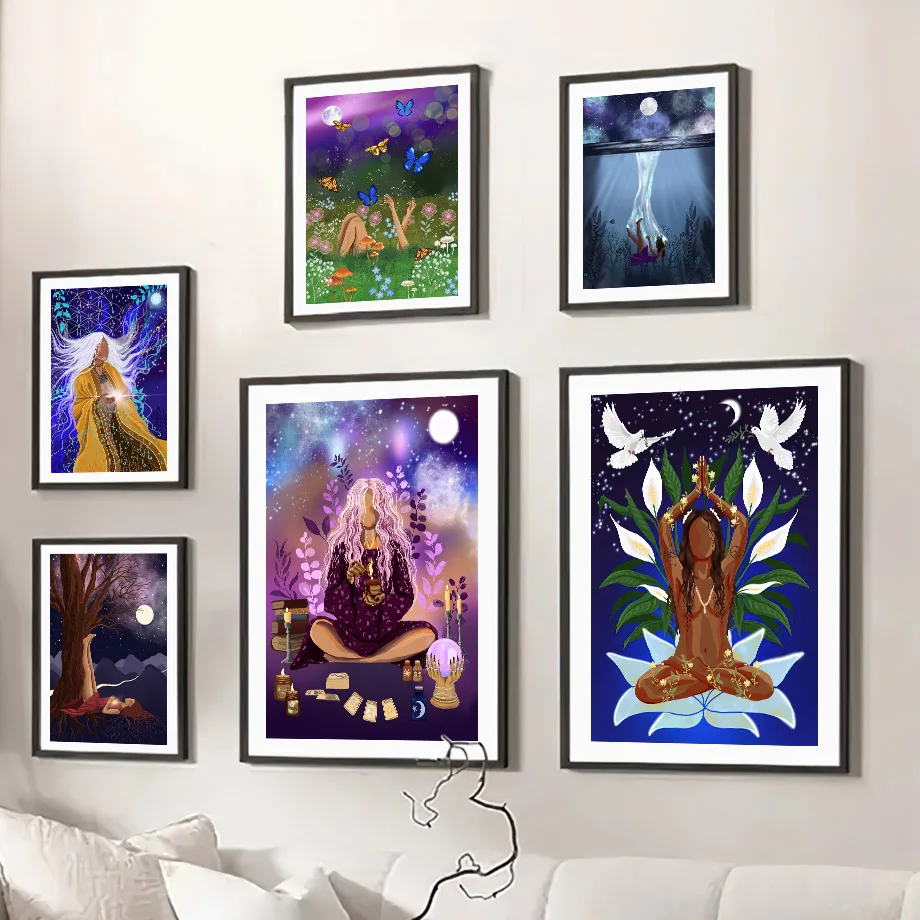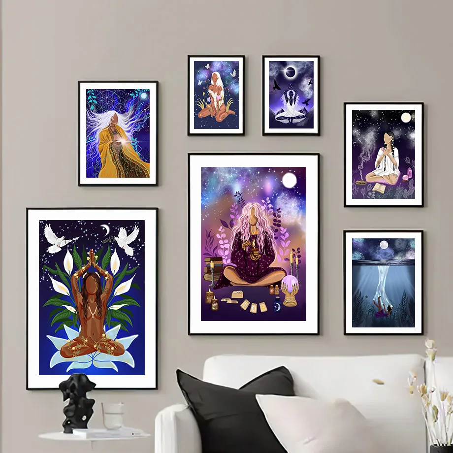 Настенная картина ведьмы Женская Йога волшебный голубь настенная Картина на холсте скандинавские плакаты и принты абстрактные настенные картины для декора гостиной