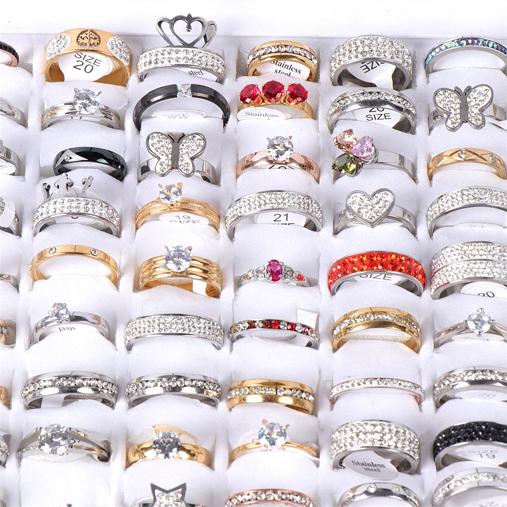 50 шт.лот модные ювелирные кольца из нержавеющей стали для женщин и...