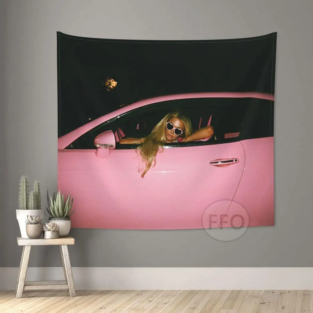 Настенный розовый гобелен в стиле Париж-Хилтон Y2k, декор для комнаты, эстетический мем, гобелен, художественный постер для спальни, фоновое украшение для дома