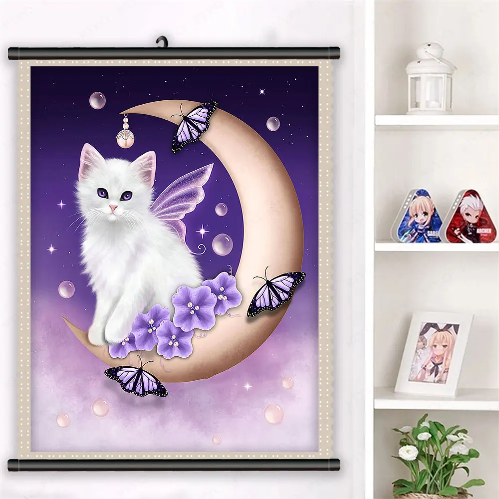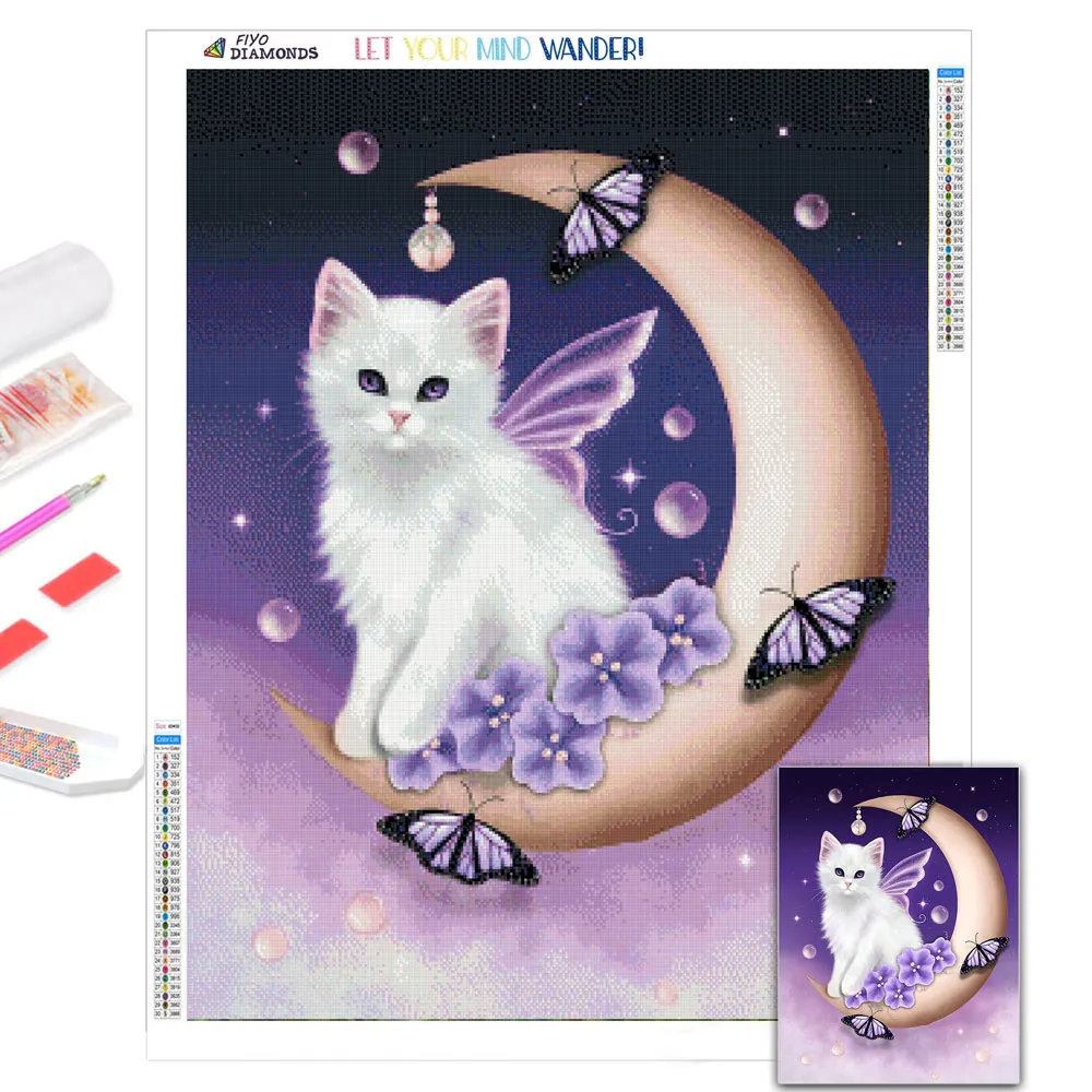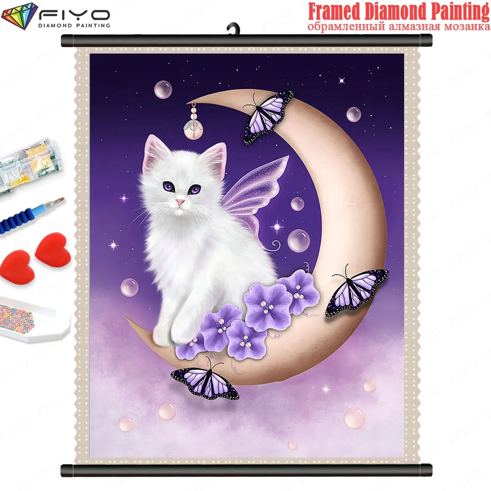 Алмазная 5D картина сделай сам, мозаика с изображением кота, Луны, животных, полная Алмазная вышивка с рамкой, Набор для вышивки крестиком, украшение для стены и дома