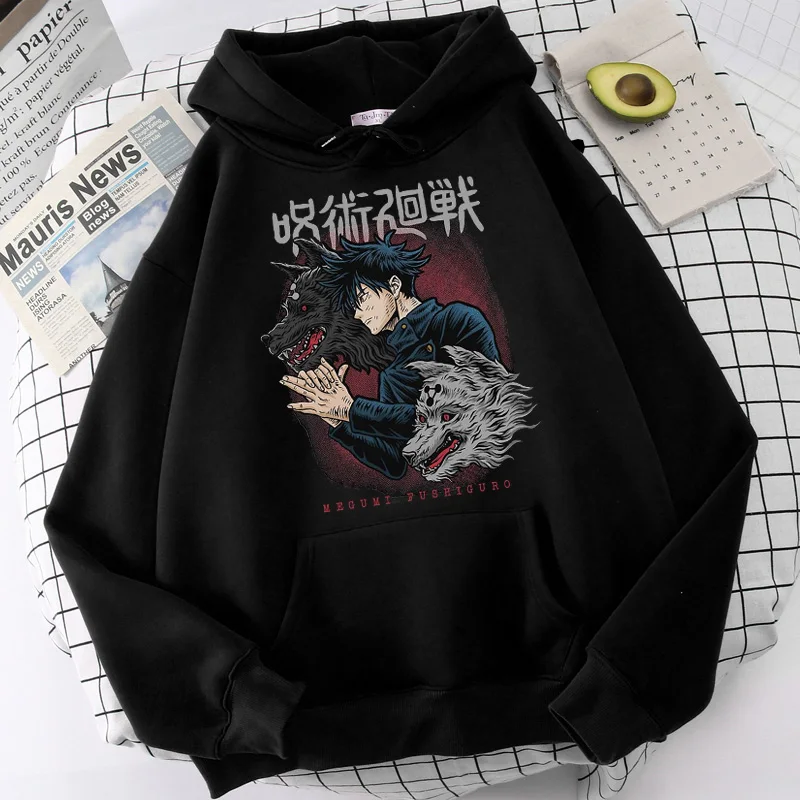 Мужская одежда с принтом японского аниме Jujutsu Kaisen, толстовки и свитшоты с длинным рукавом, черная толстовка с капюшоном, Женский пуловер в стиле панк