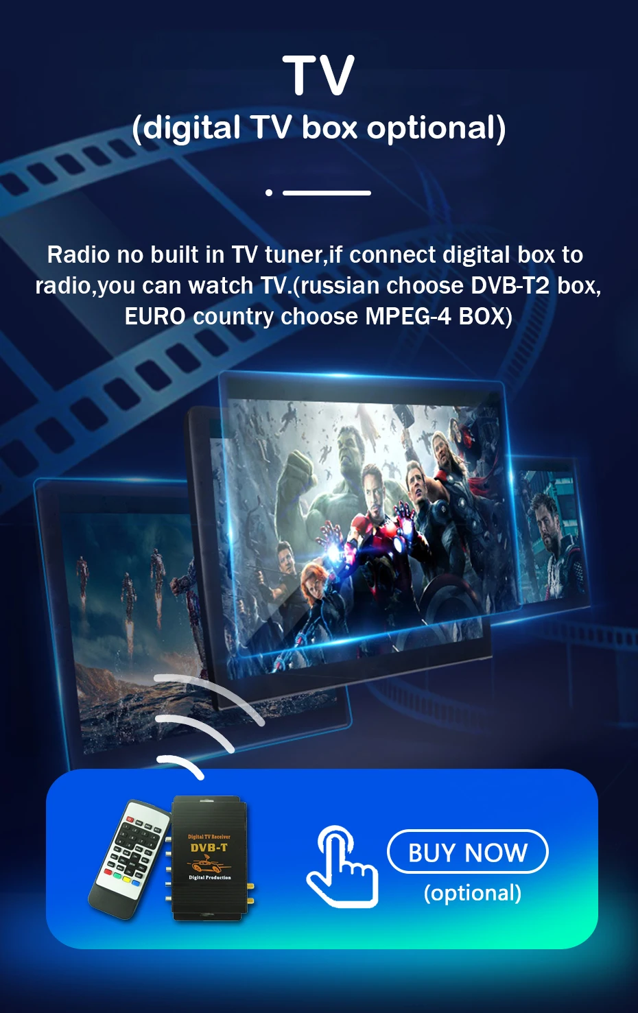 ТВ-боксЕсли вы хотите смотреть телевизор на машине, вы можете купить 1 шт. цифровой ТВ-бокс. Если в вашем городе нет цифрового сигнала, не покупайте его.Российский покупатель должен выбрать DVB-T2, в вашей стране есть только DVB-T2-сигнал. Другие страны Европы должны выбрать цифровую коробку DVB-T MEPG-4. Пожалуйста, свяжитесь с нами перед оформлением заказа в другой стране.