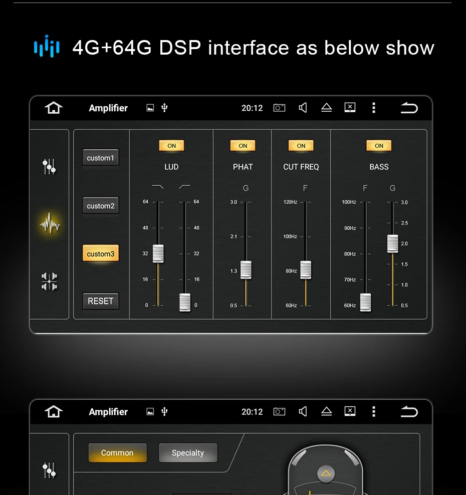 DSPDSP-это цифровая система усилителя, она использует цифровой сигнал, она делает звук автомобиля лучше, чем раньше. PX5 PX6 DSP является лучшим DSP на рынке, пожалуйста, не беспокойтесь о количестве эквалайзера, пожалуйста, чувствуйте наше качество звука px5/px6 радио, это очень хорошо.PX5/PX6 DSP включает много страниц, вы можете задать много параметров, как вы хотите, см. Ниже страницы.