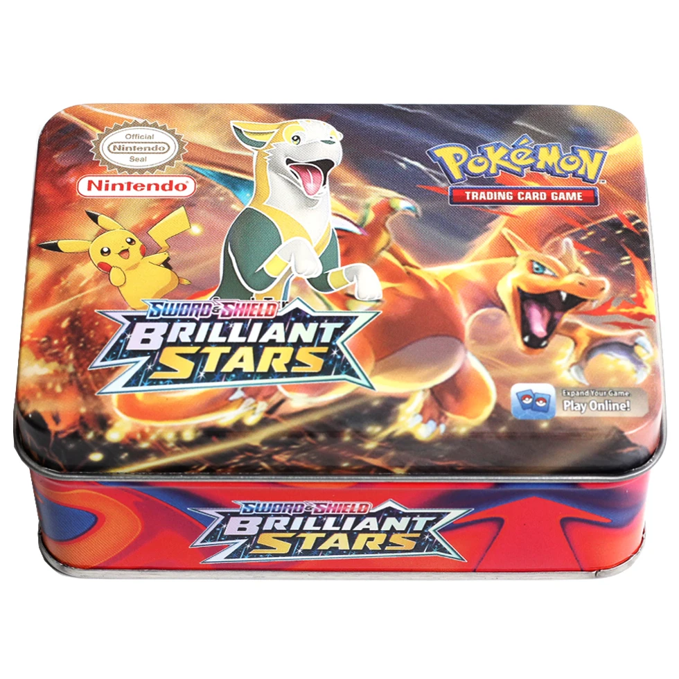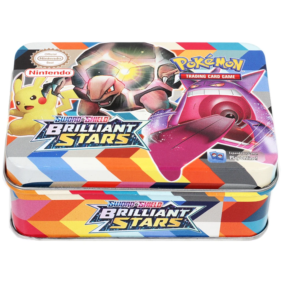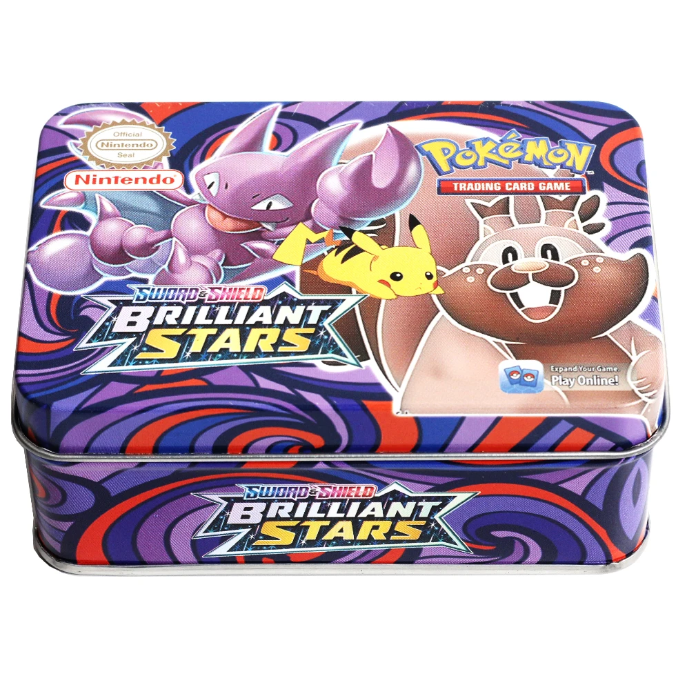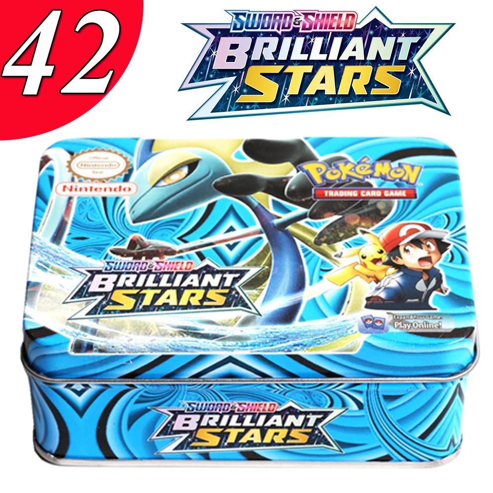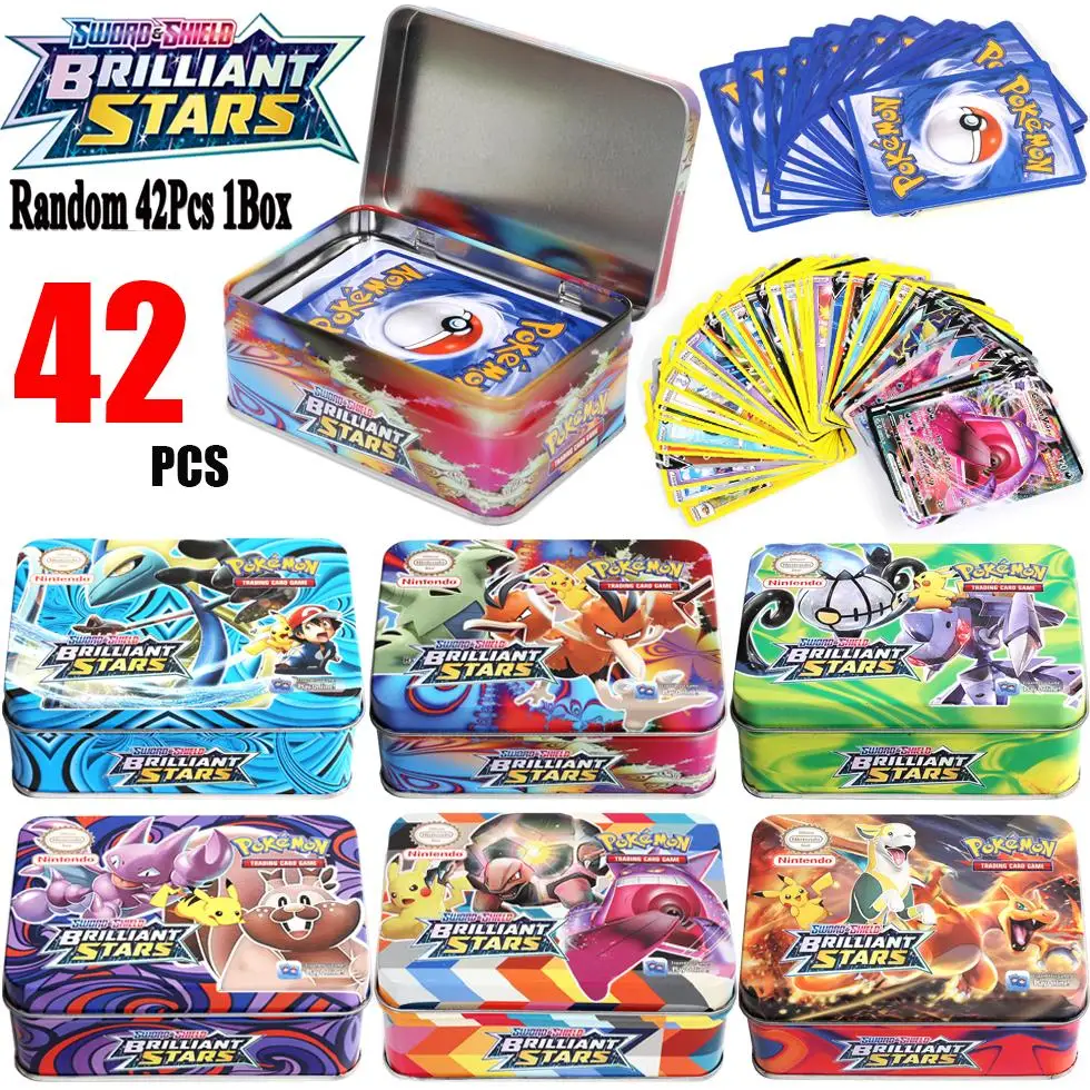 Английский Новый 42 шт. карты покемона меч и щит блестящая Звезда железная коробка 25 юбилей боевая игра Мультяшные детские игрушки подарки