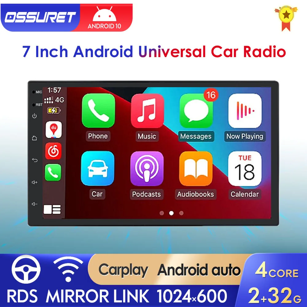Автомагнитола 2DIN, 7 дюймов, Android, мультимедийный автомобильный радиоприемник Carplay, видео, аудио, универсальный стереоплеер, RDS, GPS, Wi-Fi, для VW, Nissan, Toyota