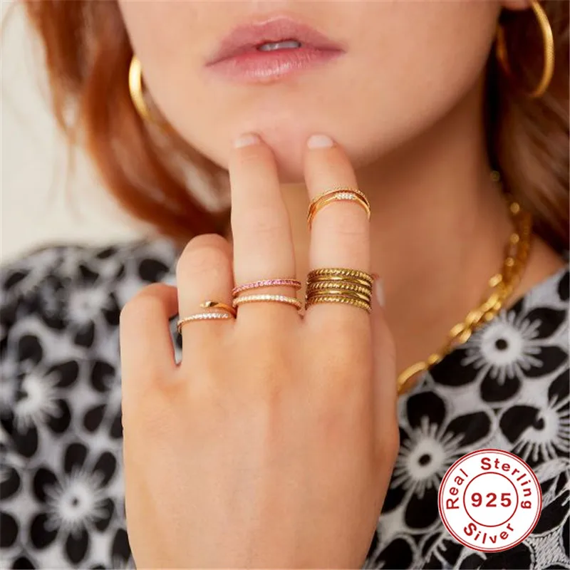 Кольцо CANNER 925 пробы, серебряное кольцо для женщин и девочек, минималистичное кольцо с фианитом, регулируемые кольца в стиле хип-хоп