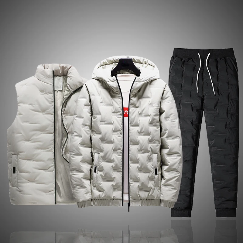 3 шт., мужской зимний пуховой костюм из куртки и брюк