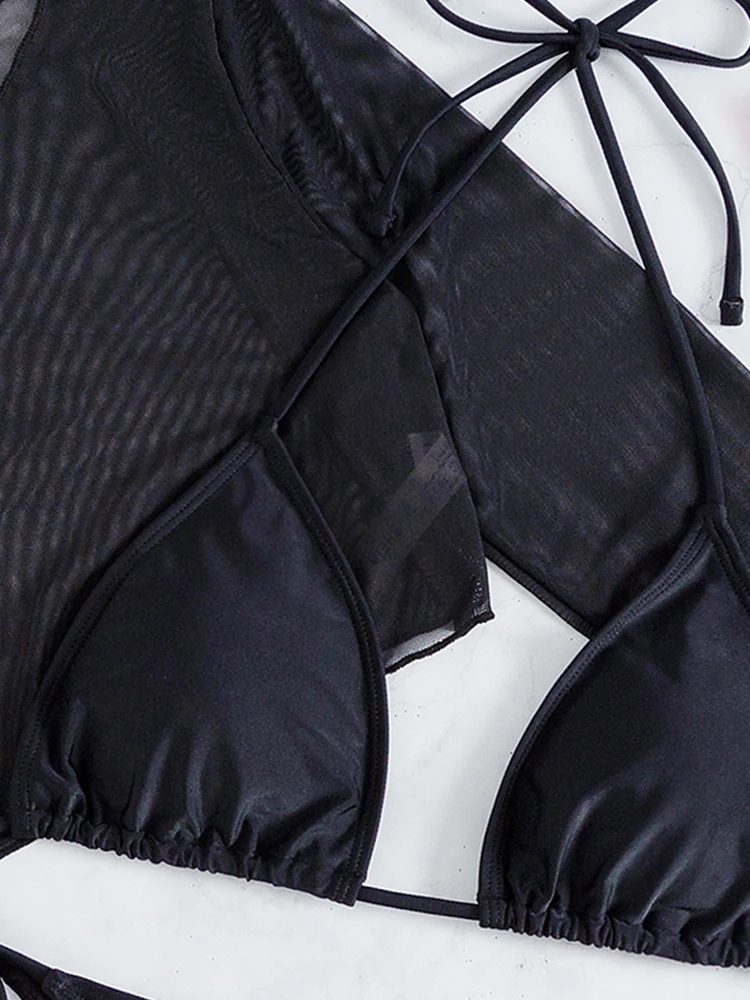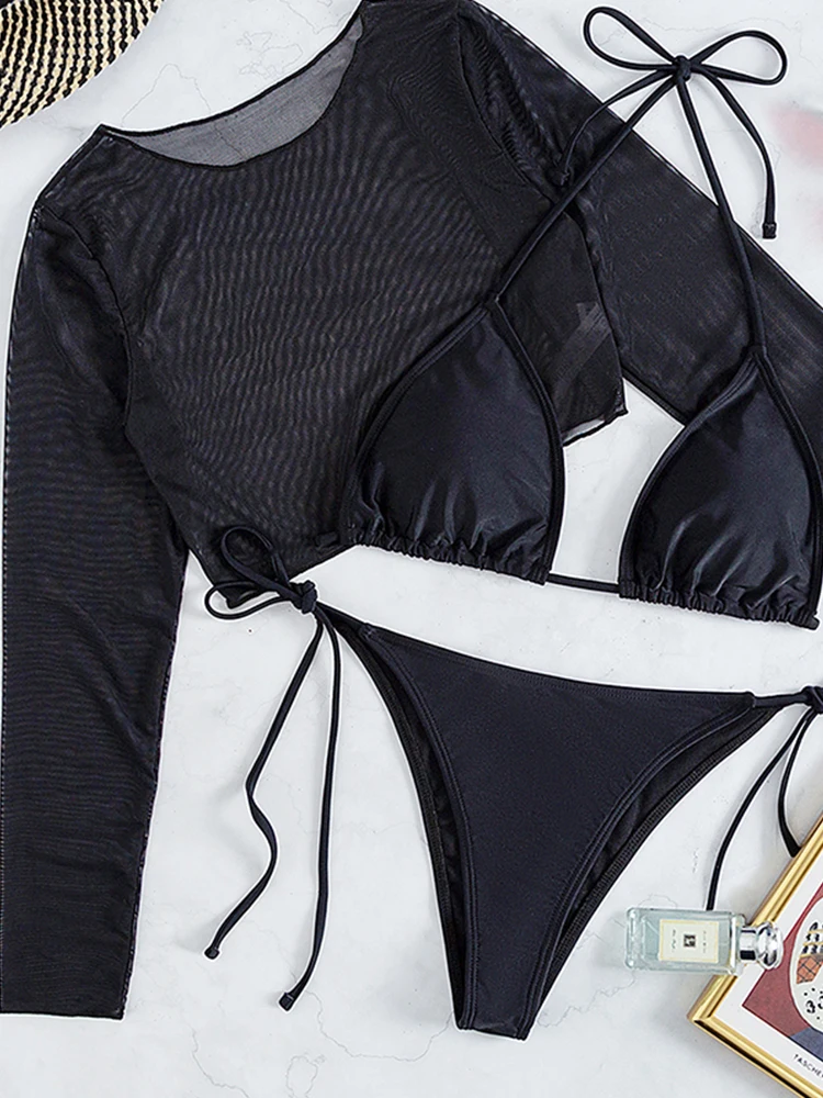 Bikini topMesh long sleeve bikini woman swimwear