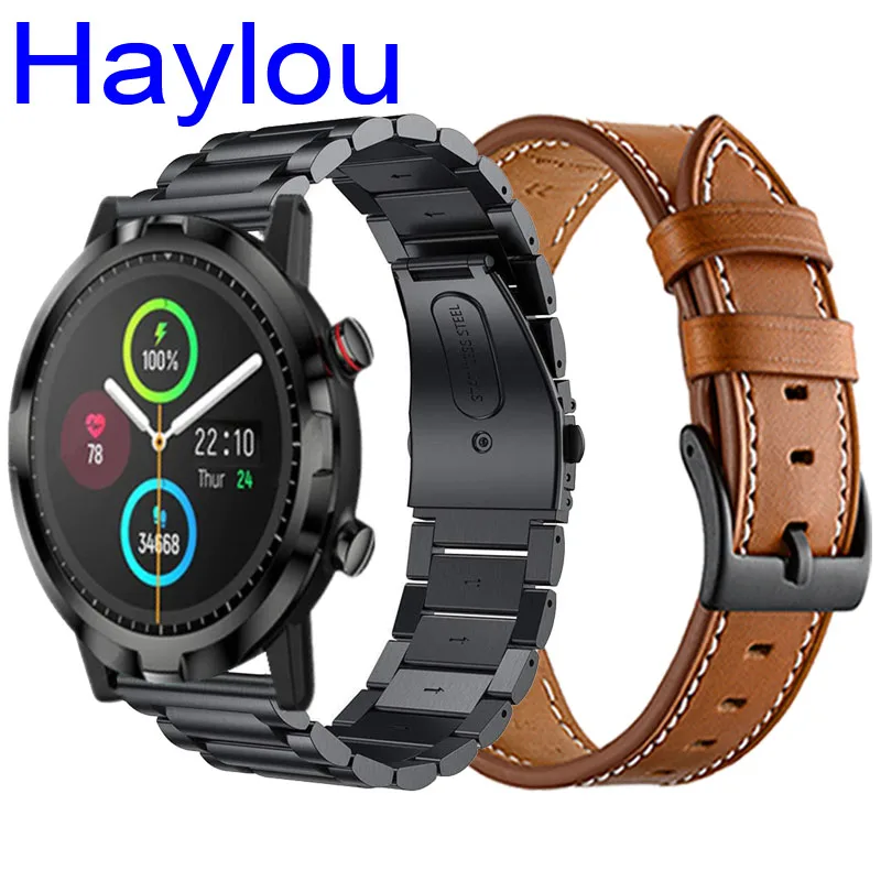Кожаный браслет для часов Haylou Solar RS3 LS04 LS05S LS02 GST RS4 RT2, ремешок для часов из нержавеющей стали