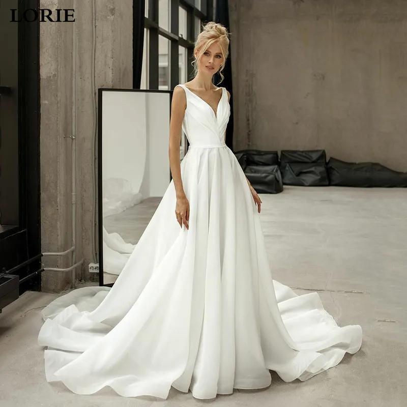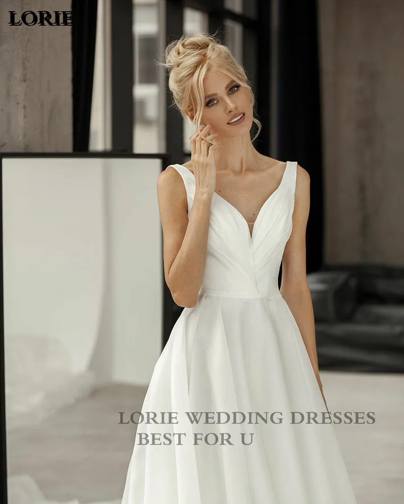 Современные атласные свадебные платья LORIE трапециевидного силуэта, сексуальное простое платье невесты цвета слоновой кости с открытой спиной и шнуровкой сзади