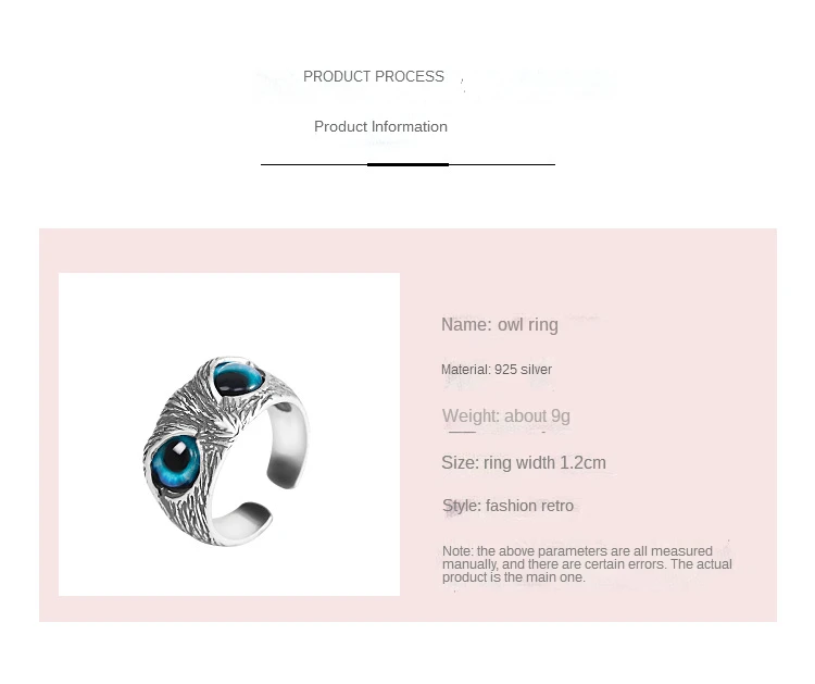 Кольцо из стерлингового серебра S925 пробы, ювелирные изделия из тайского серебра, Ретро ювелирные изделия, индивидуальное открытое мужское вечерние ЦО в стиле совы для вечеринки, хип-хоп, для дам, подарок